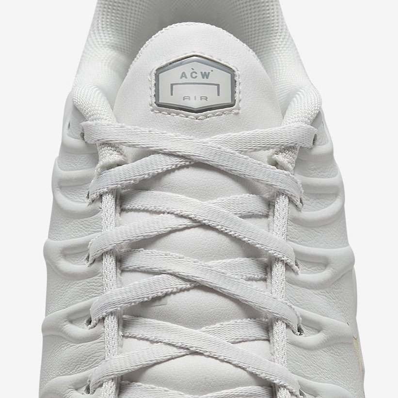 细节方面,除了鞋舌、后跟的「ACW」Logo 外,侧身 Swoosh 和方块设计均以裁剪设计呈现,进一步提升鞋款层次感。