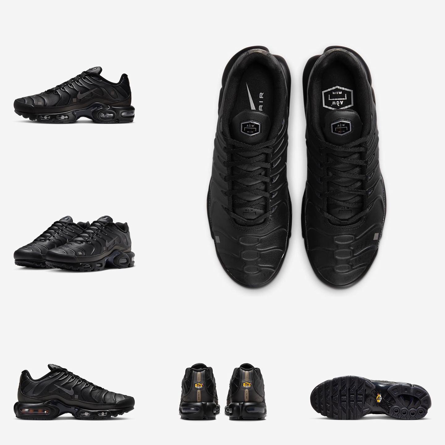 此次全新联名采用 Nike Air Max Plus 为蓝本打造,分别推出了一黑一白两款配色。