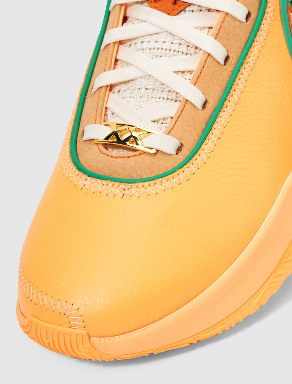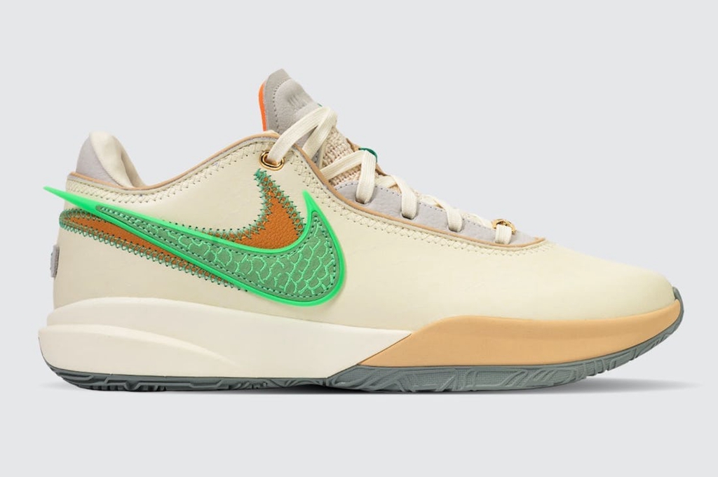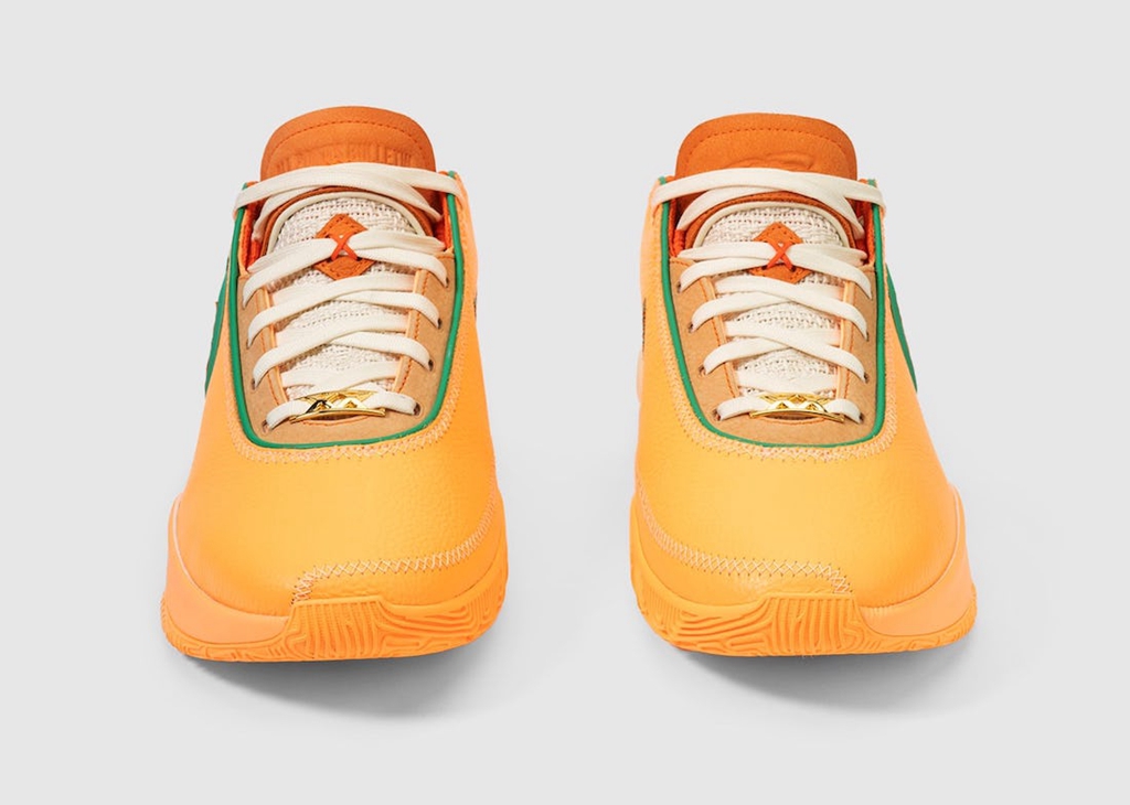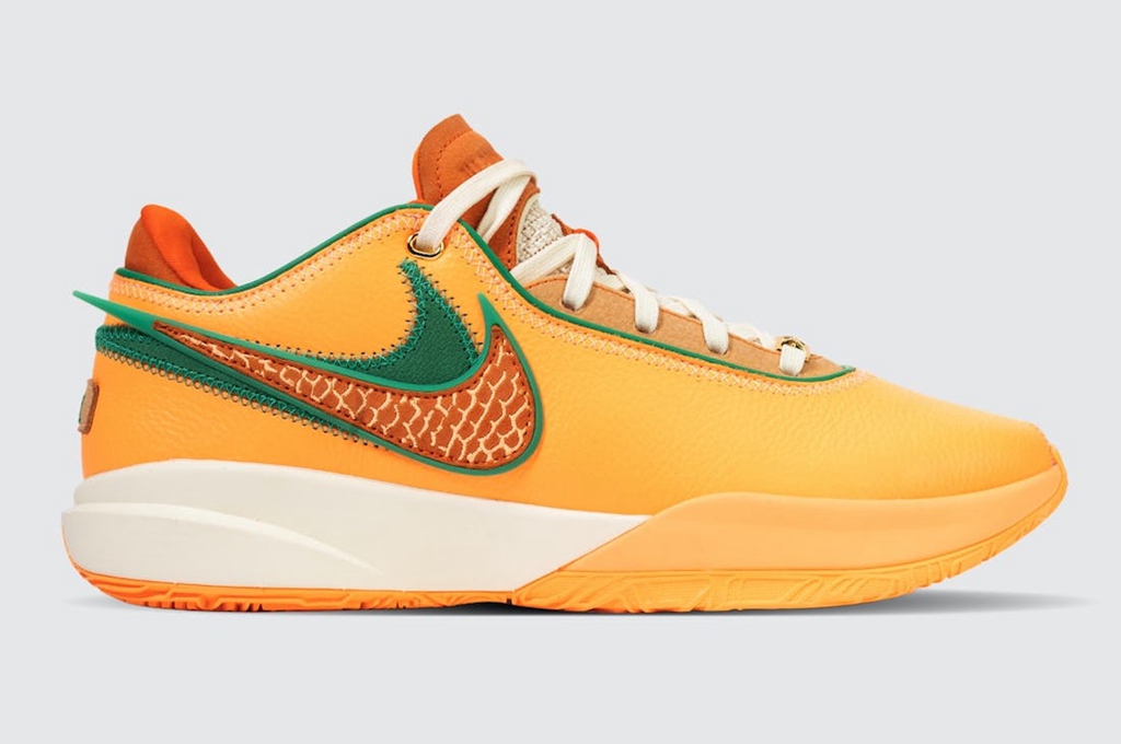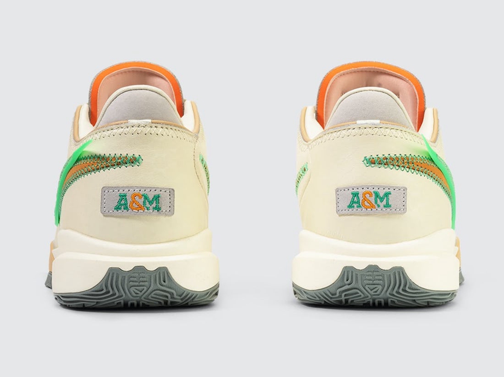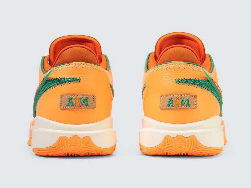 侧身依旧是双 Swoosh 设计,分别以绿色、橘色点缀,呼应佛罗里达农工大学的球队颜色。