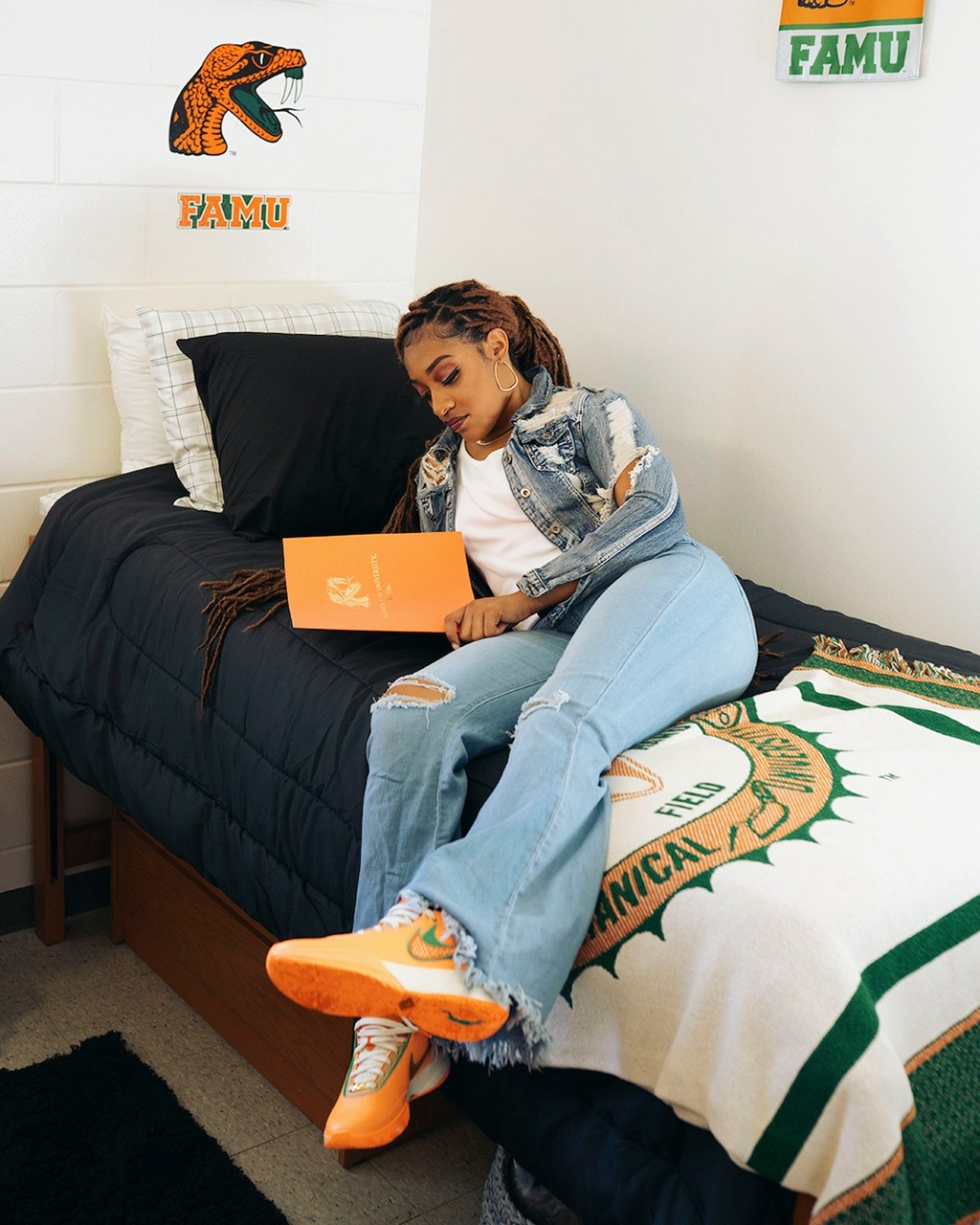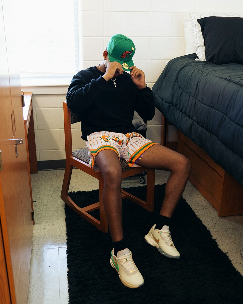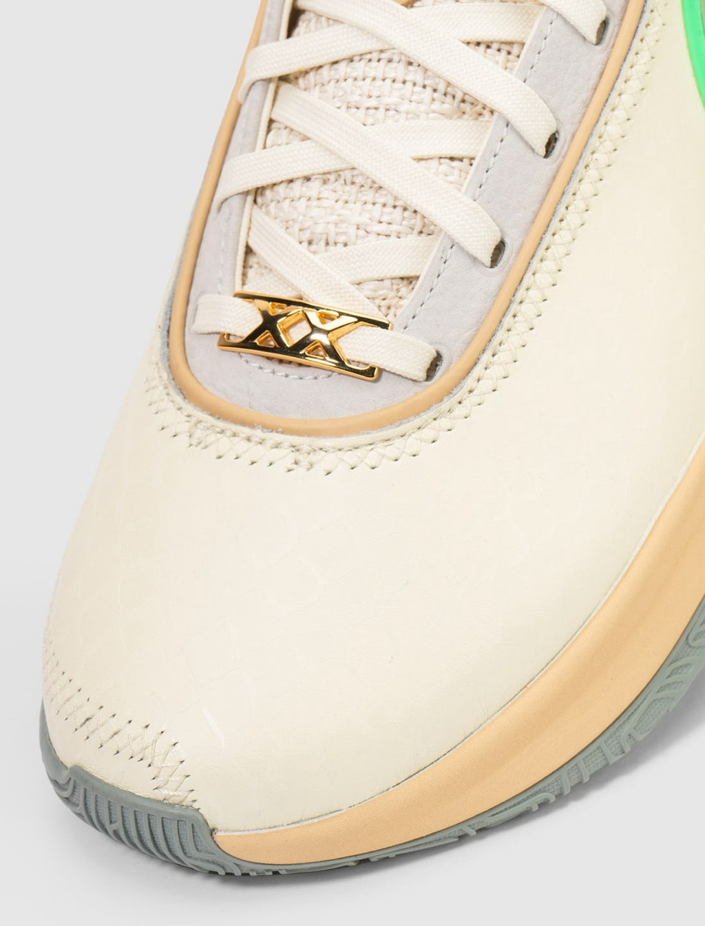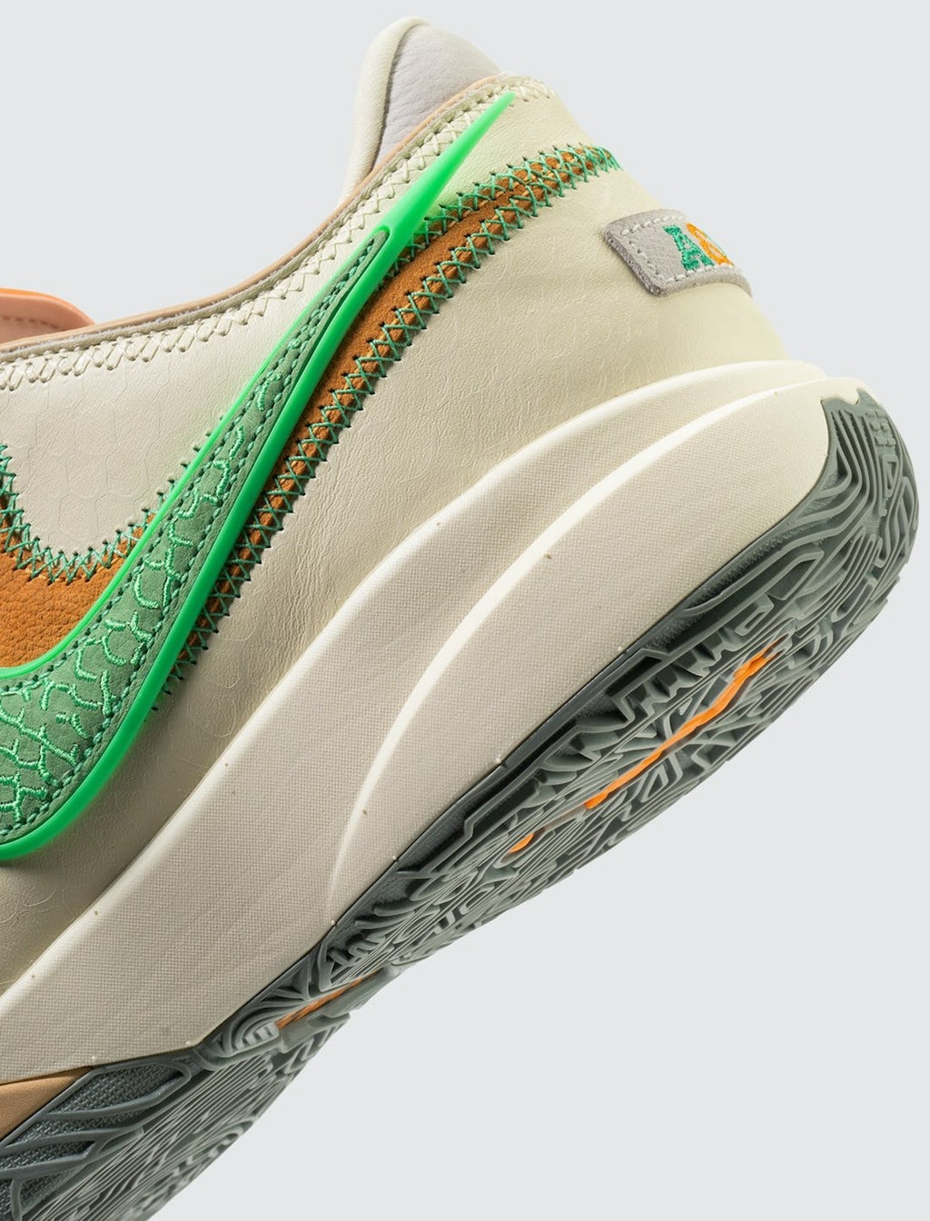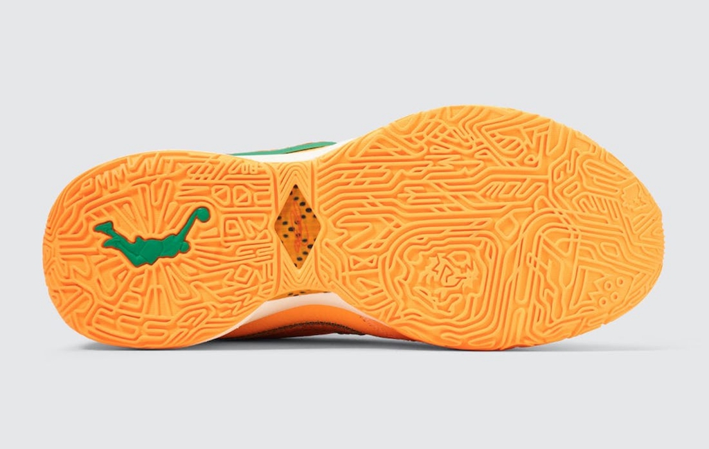 侧身依旧是双 Swoosh 设计,分别以绿色、橘色点缀,呼应佛罗里达农工大学的球队颜色。