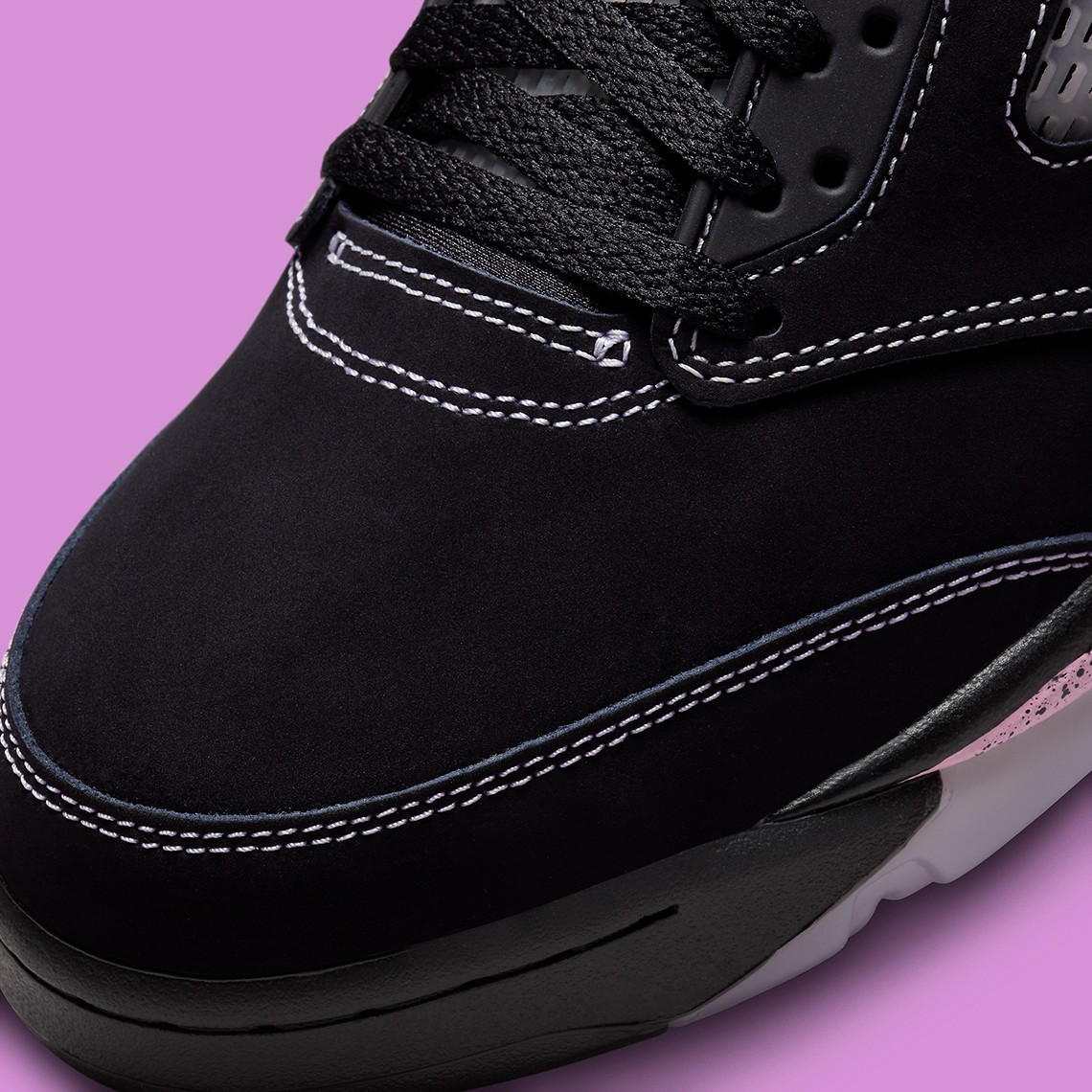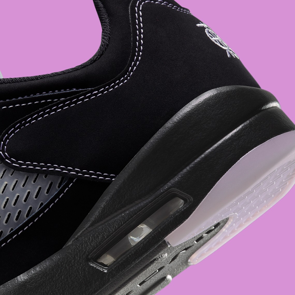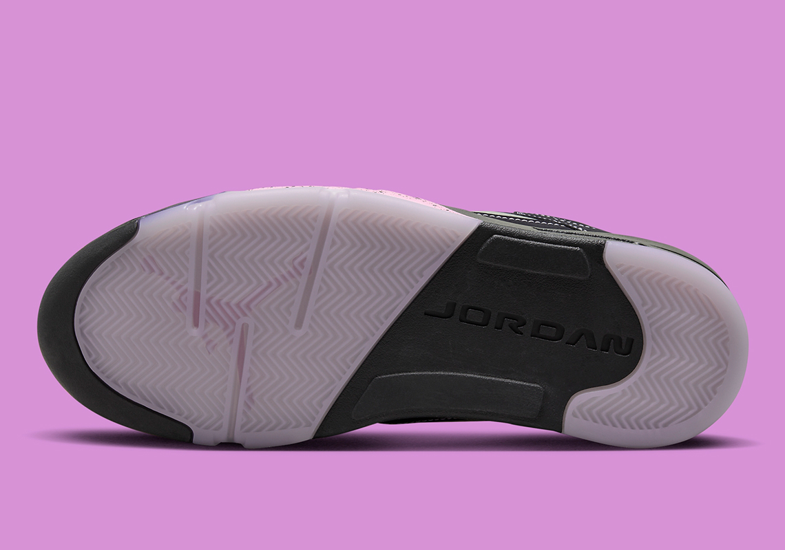 此次全新的「东单」配色以 Air Jordan 5 Low 为蓝本进行创作,通体黑色的鞋身辅以淡粉色点缀,视觉效果低调又不失细节。