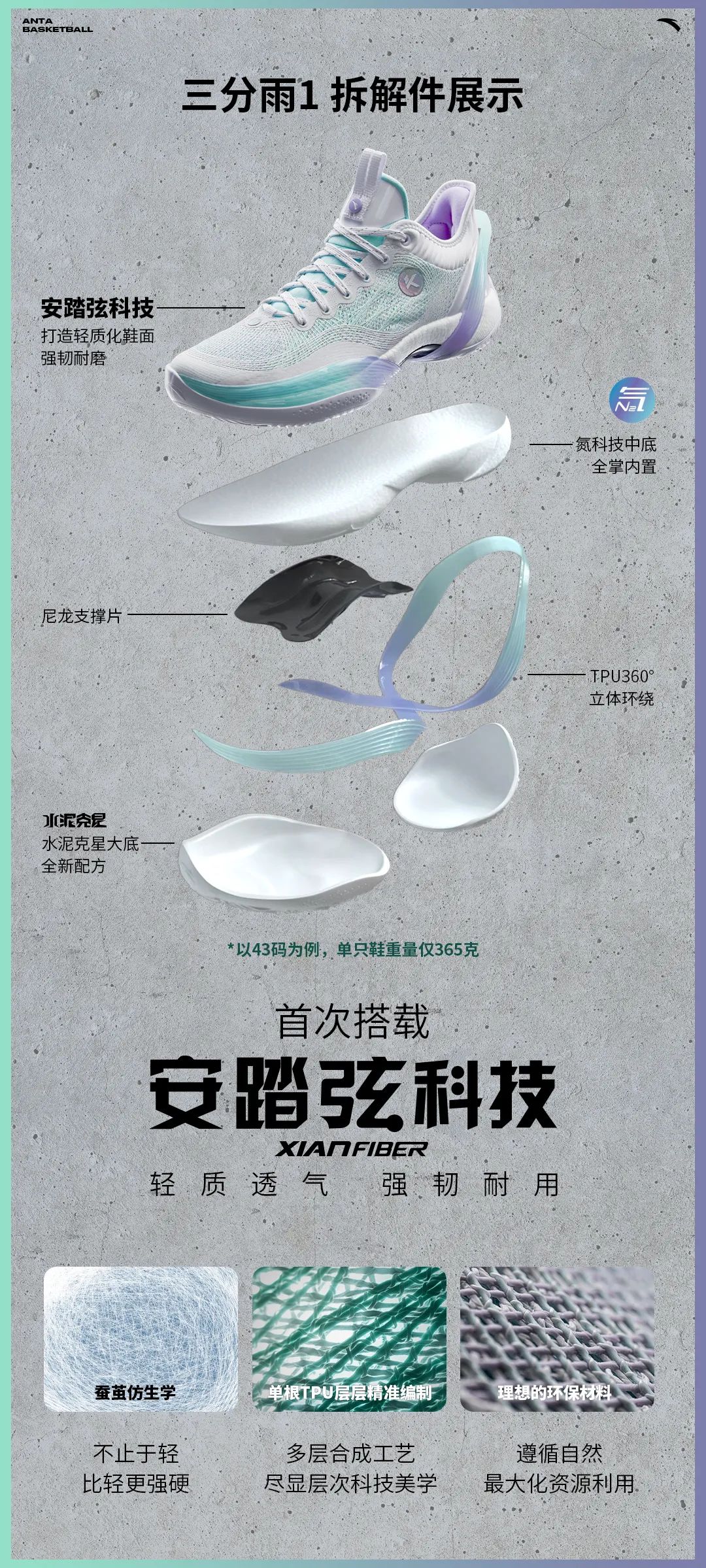 鞋面安踏「弦科技」灵感来源于蚕茧的仿生学设计,是由 TPU 纱线编织而成。