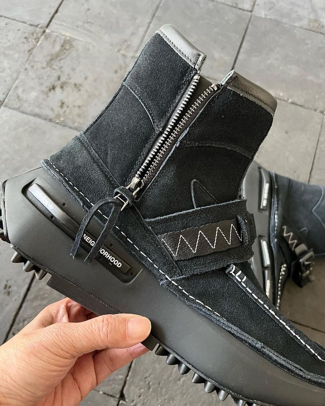一袭黑魂装扮承袭 NEIGHBORHOOD 极具代表性的暗黑风格。
