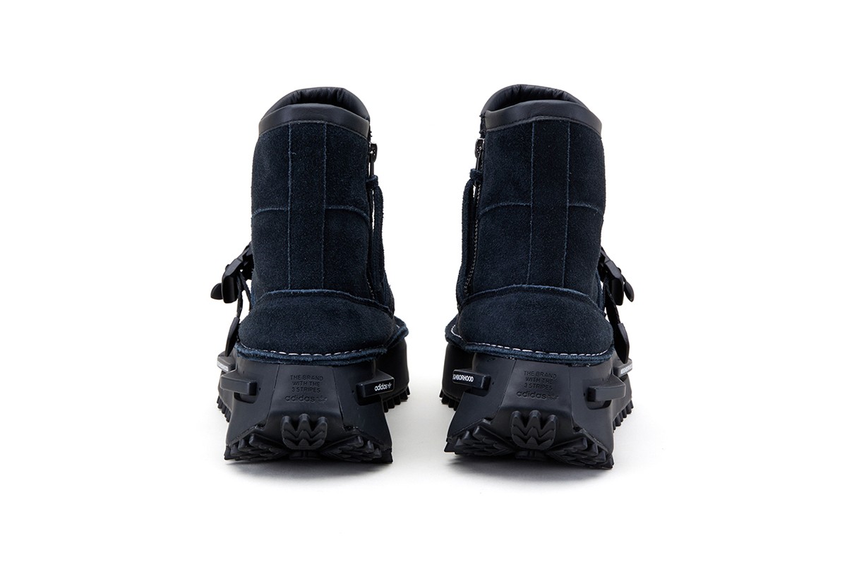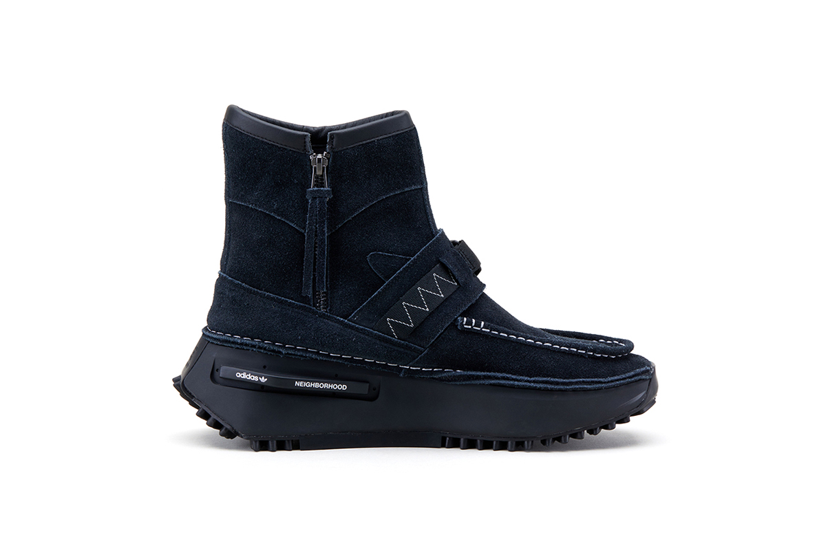 夸张的黑色中底内置有全掌超厚 Boost,保证优秀脚感,同时还缀有 NEIGHBORHOOD 与 adidas Originals Logo,彰显联名身份。