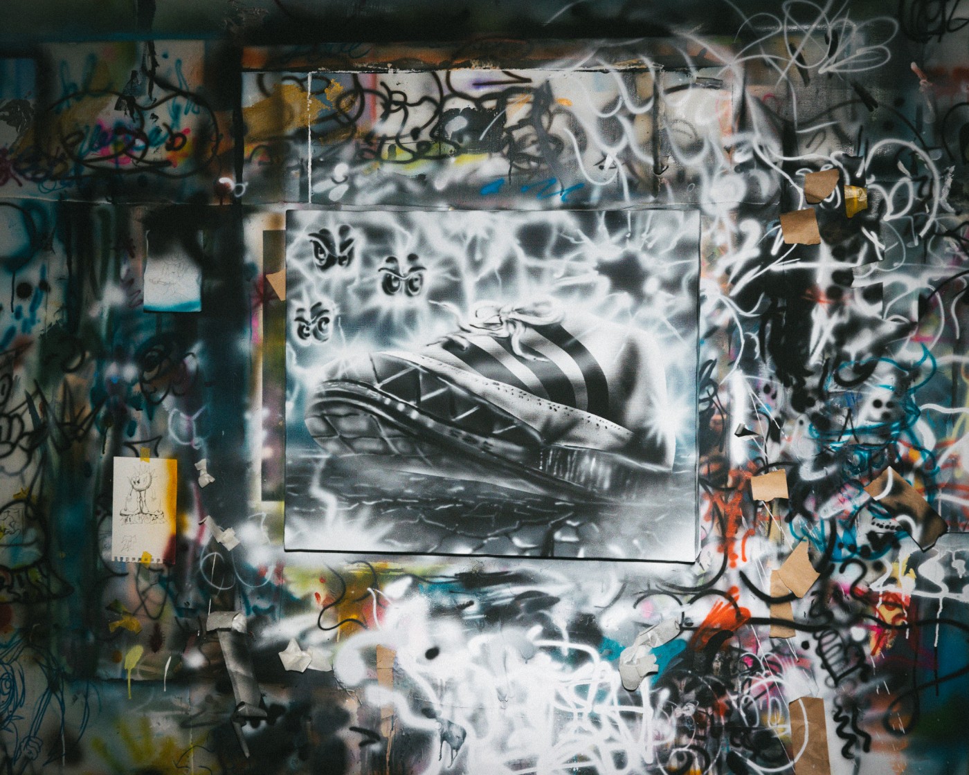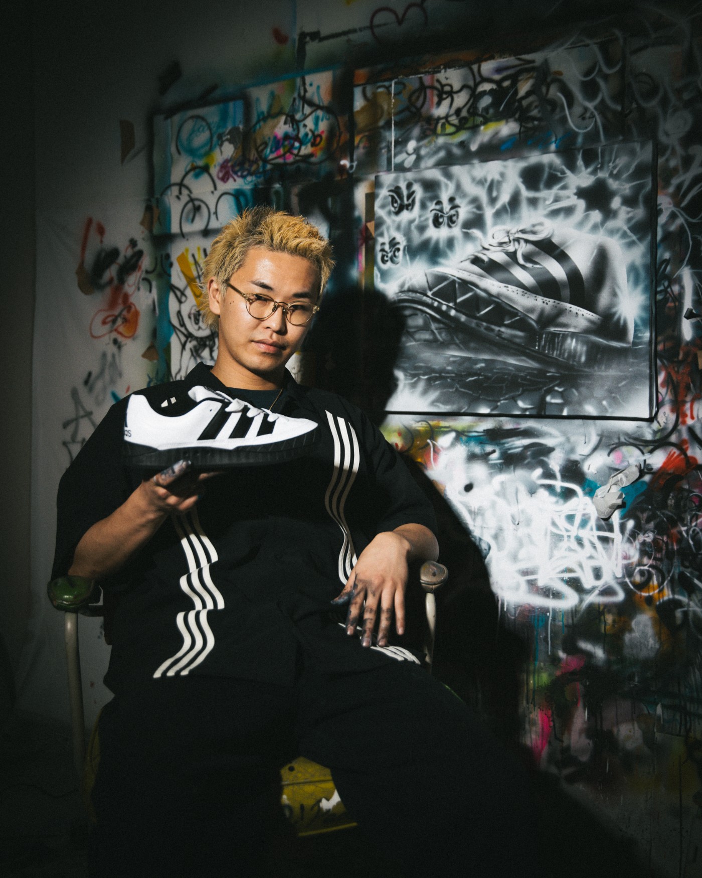 此次联名系列,还邀请到日本艺术家 Ryota Daimon 创作了以 Adimatic 鞋款为主题的喷绘海报。