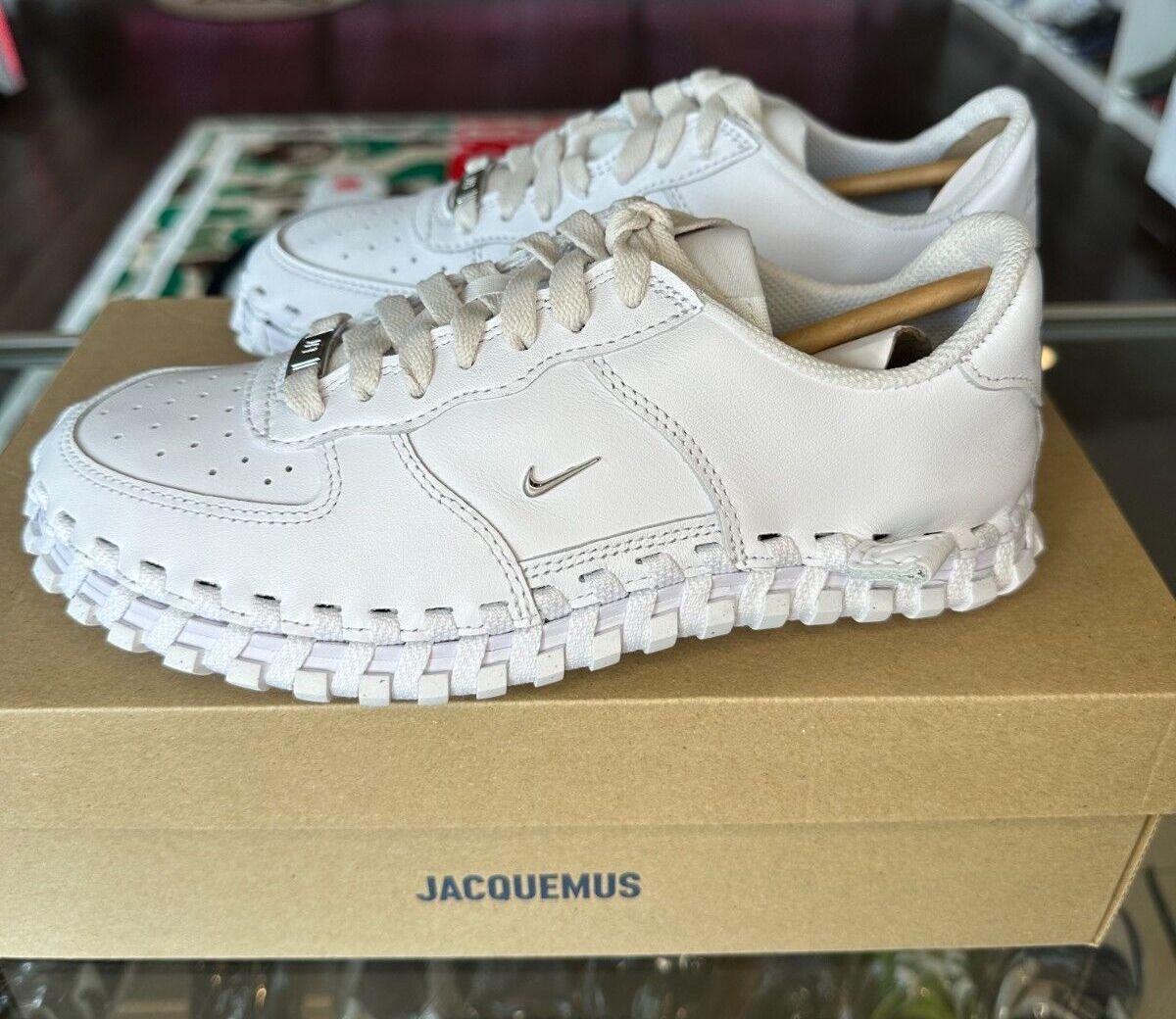 整双鞋保留了经典的 Air Force 1 鞋身,纯色造型更是将 Jacquemus 最擅长的简约设计彰显。