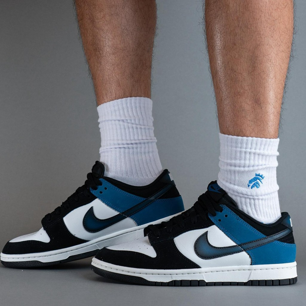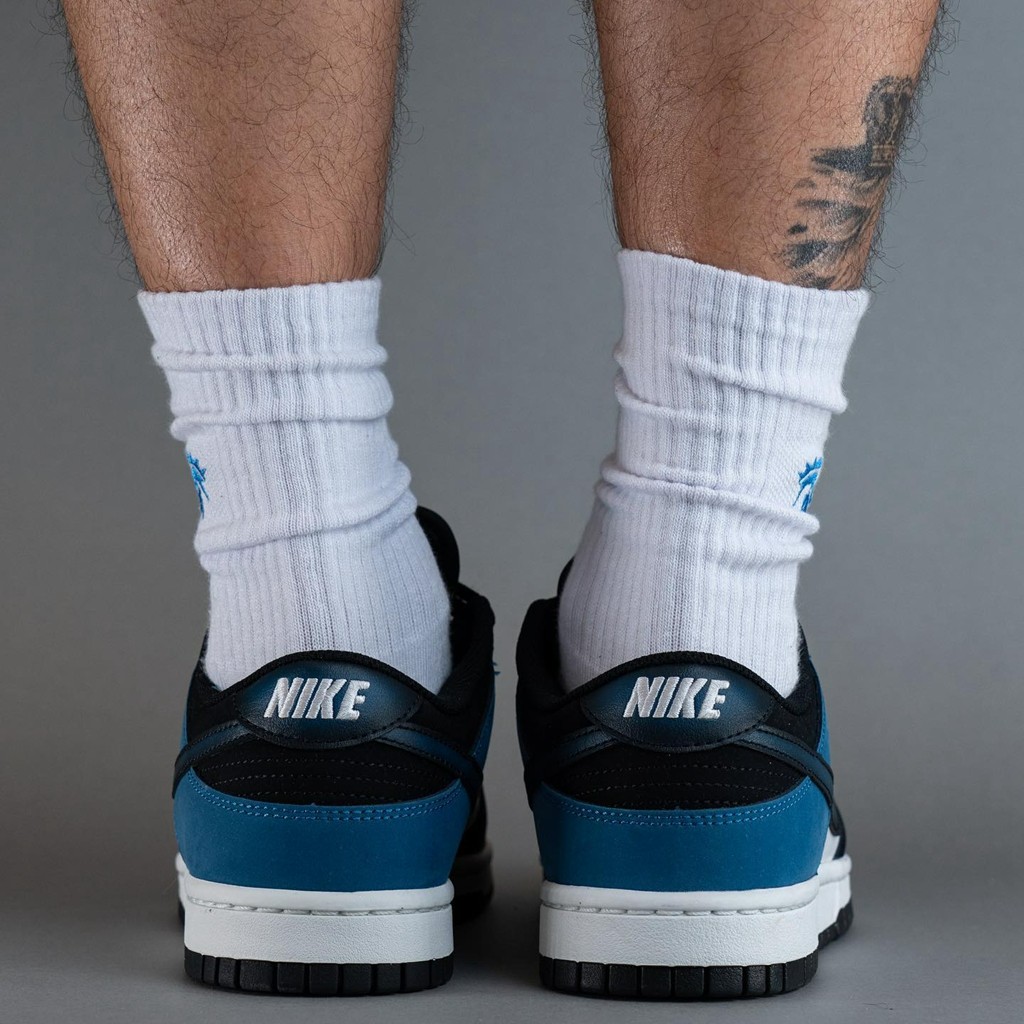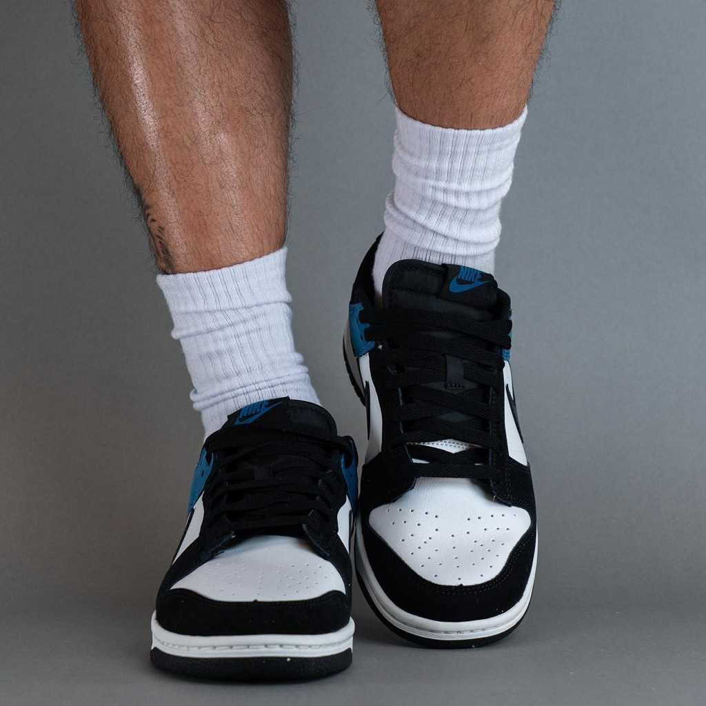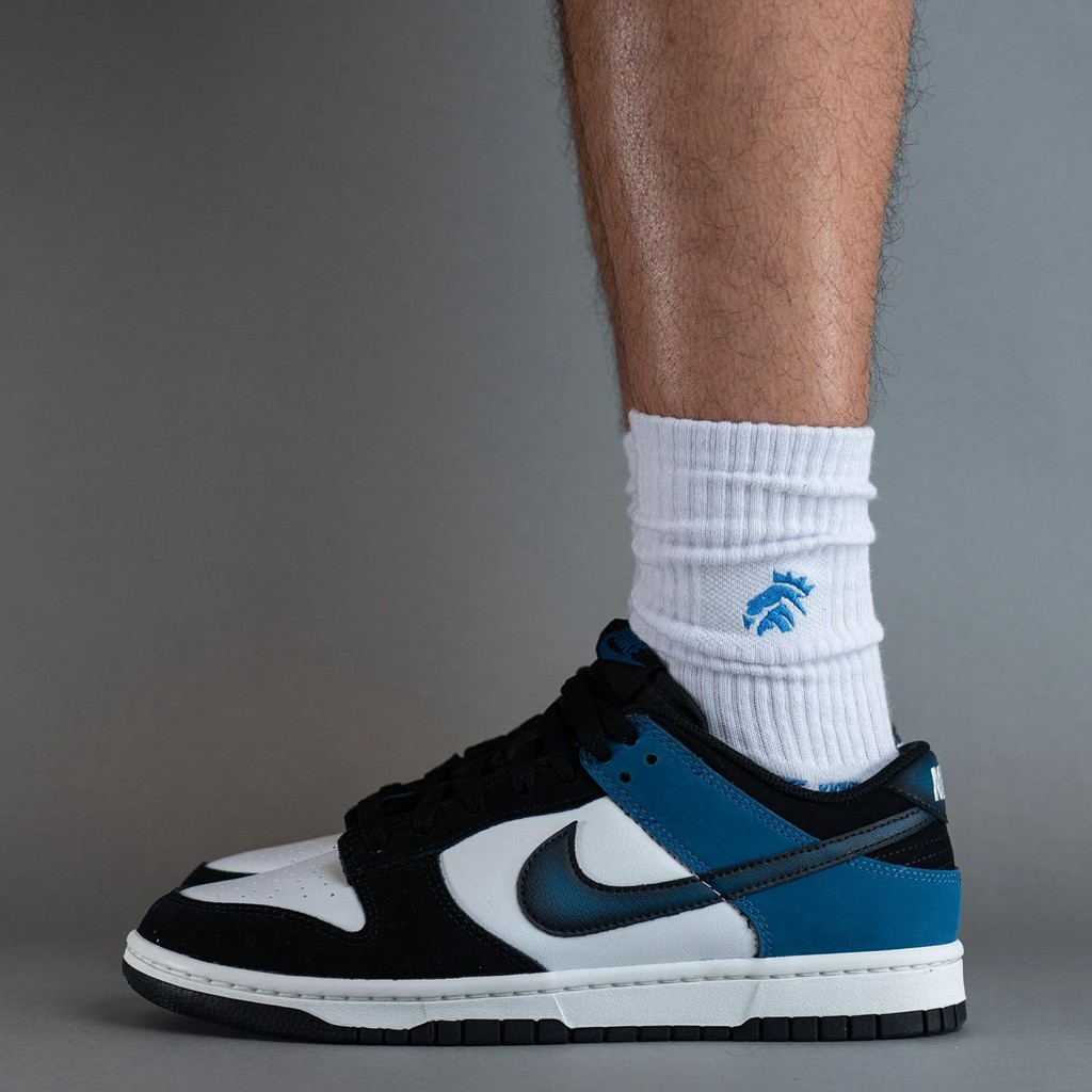 近日,此前曝光过官图的「黑蓝脚趾」Nike Dunk Low “Industrial Blue” 迎来实物上脚!