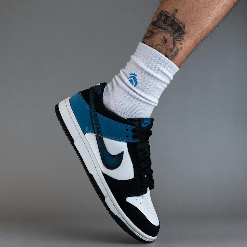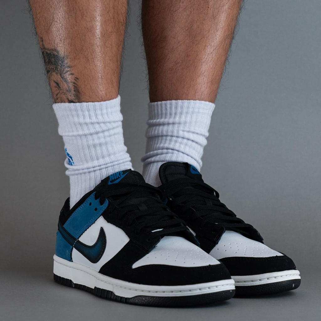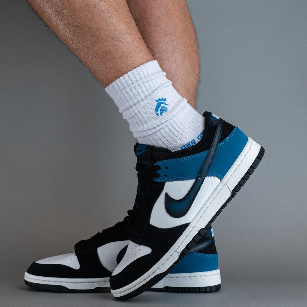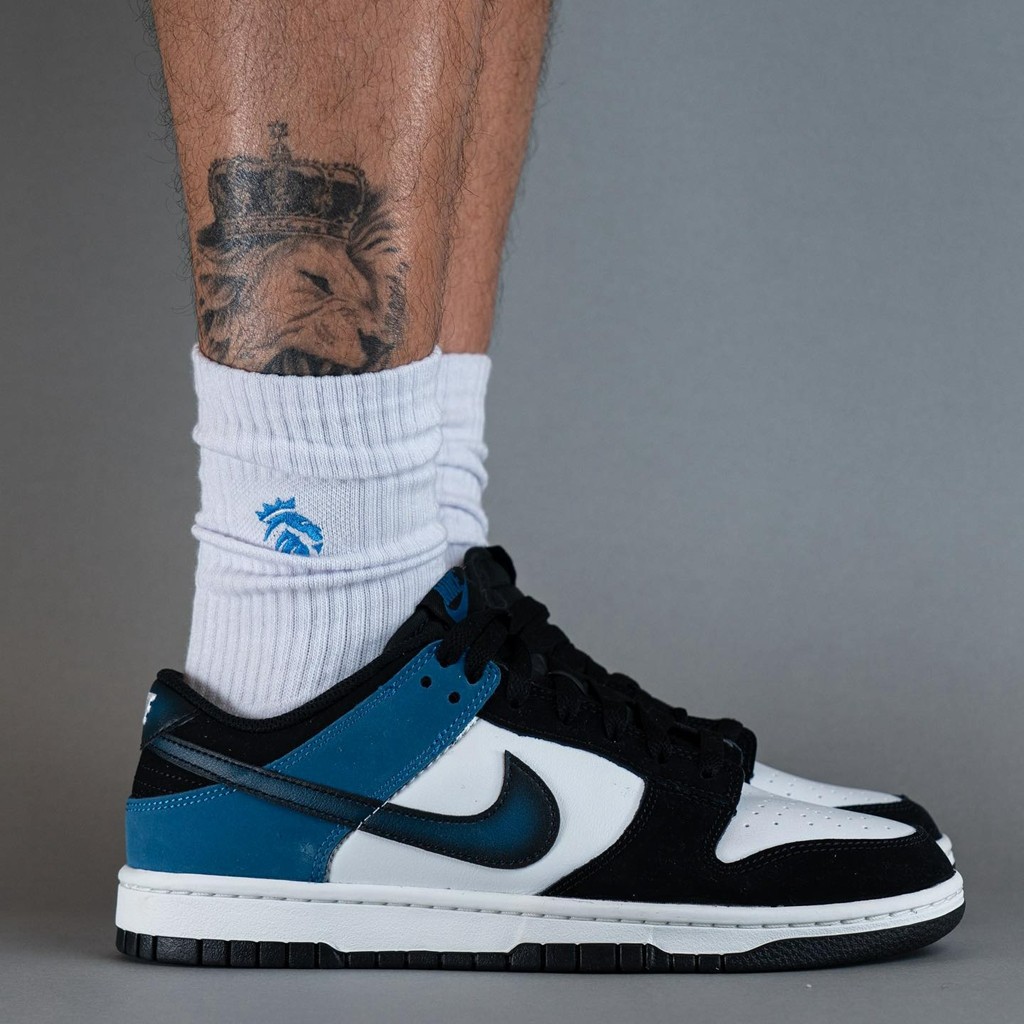近日,此前曝光过官图的「黑蓝脚趾」Nike Dunk Low “Industrial Blue” 迎来实物上脚!