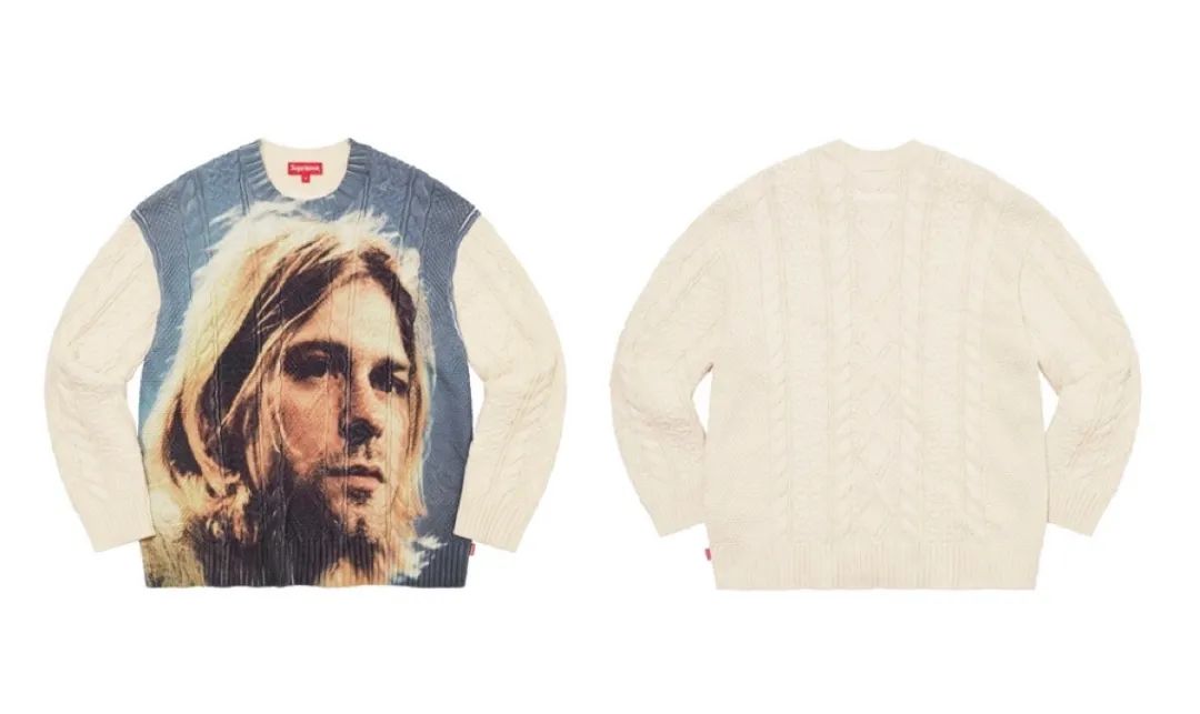 而小编最中意的必是这件 Kurt Cobain 头像毛衣,照片取自 Nirvana 1993 年纽约不插电演唱会。