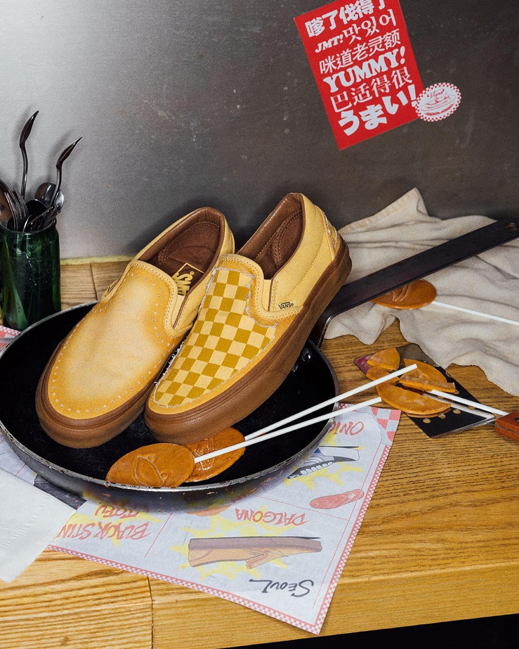 先来看第一双 Vans Slip-on,灵感来自有名的韩国糖饼,相信很多人都吃过。