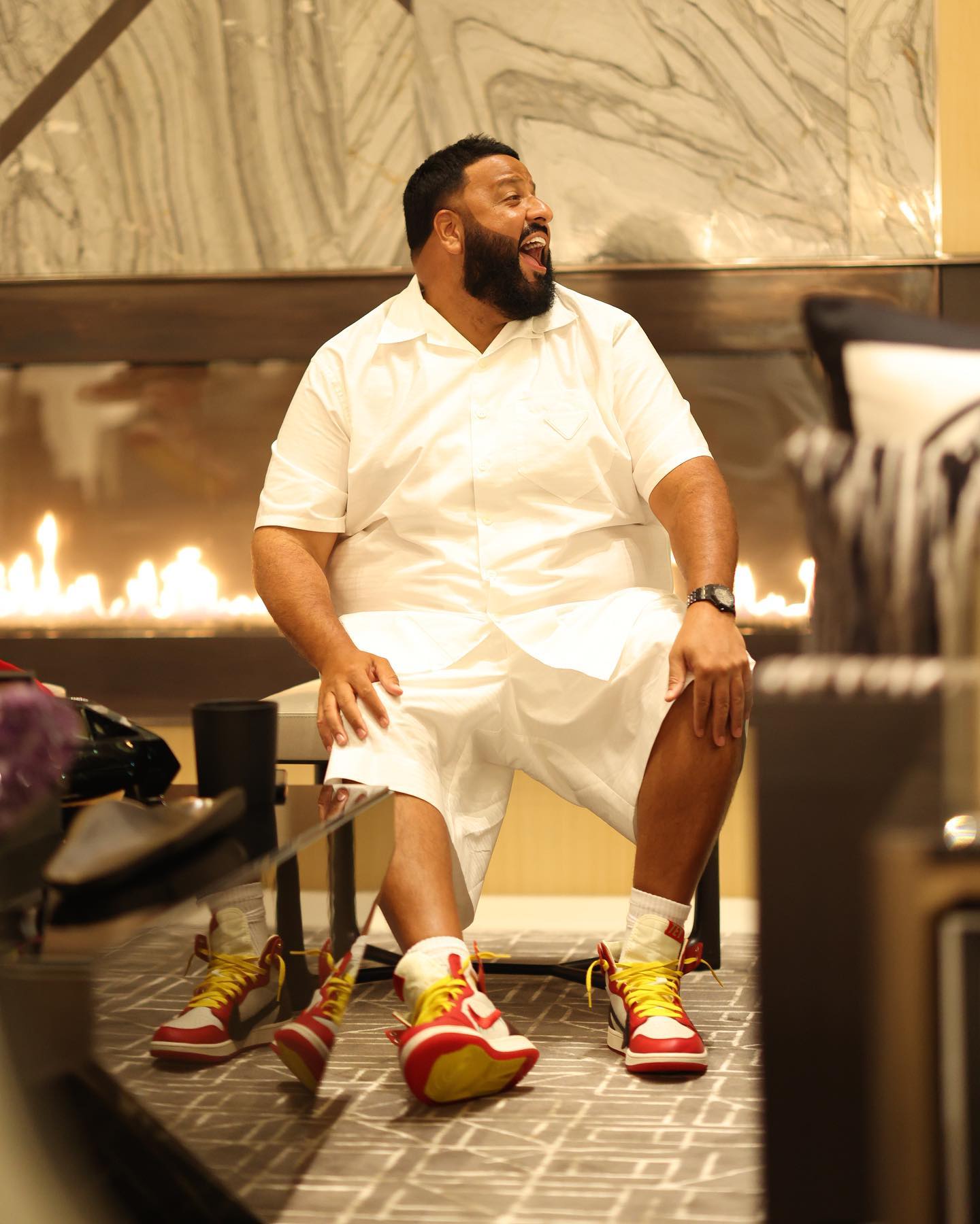 前段时间,持续「整活」的 DJ Khaled 就收到了这款联名鞋,拿到手就疯狂猛吸,近日他成功上脚快来看看吧!