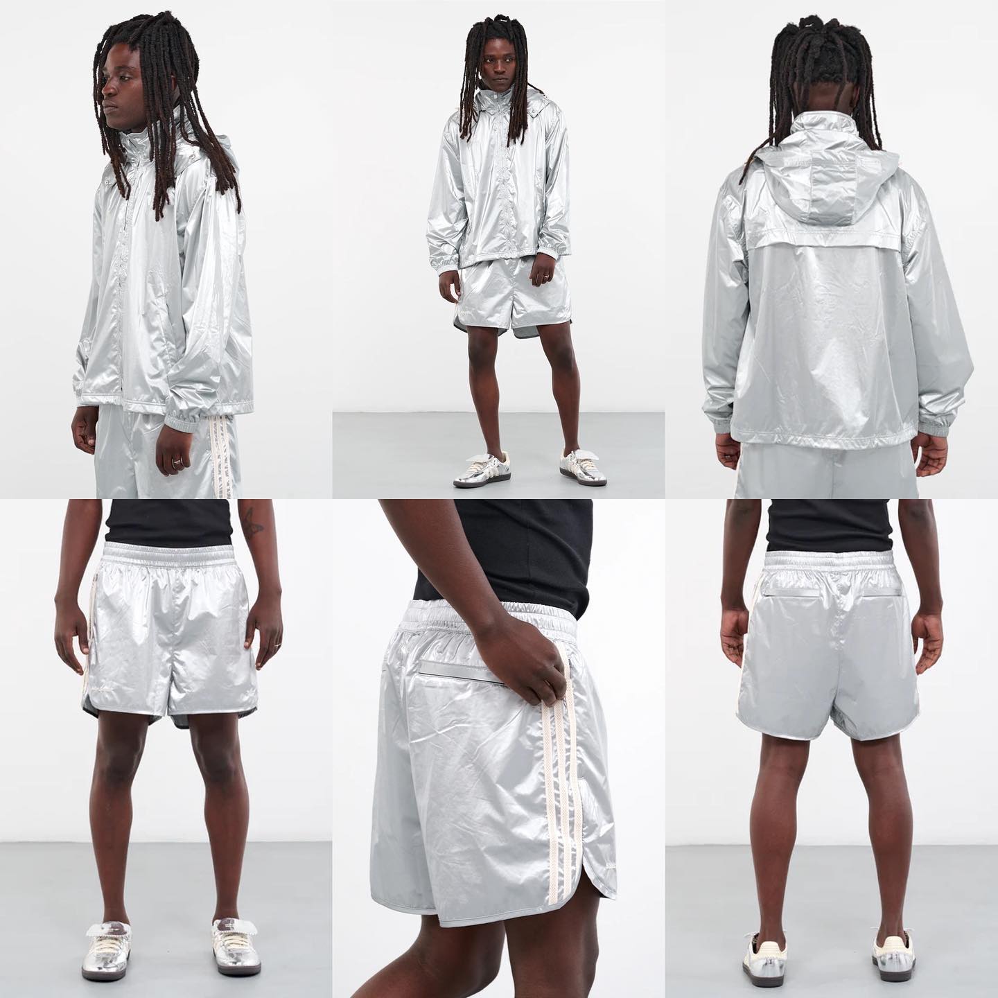 其中这身银色反光材质的套装,风格气质上和其余服饰截然不同,上身一定会吸引不少目光。