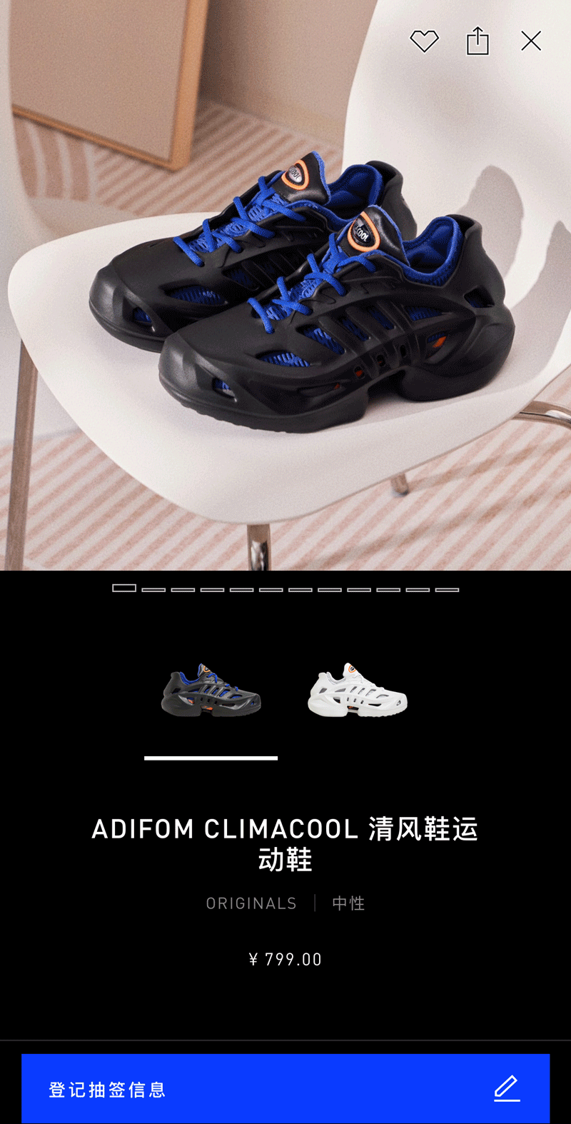 最后则是大家关心的发售信息,全新的 adiFOM Climacool 目前已经在 CONFIRMED APP 开启抽签,于 6 月 4 日也就是明天上午 9:30 正式截止,发售价格 ¥799 元。