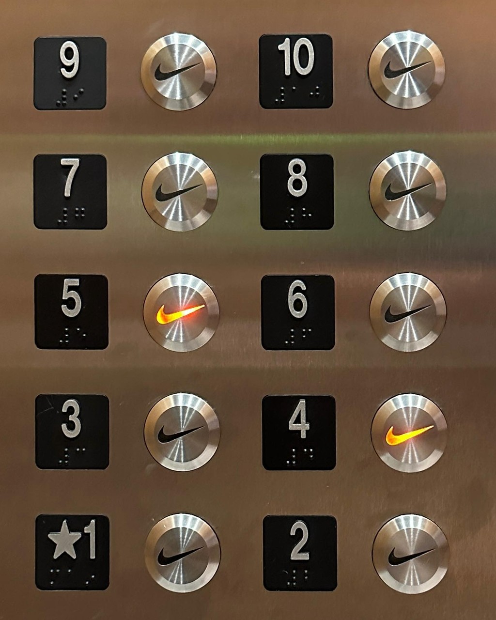像是电梯按钮,就都被设计成了 Swoosh 样式,Nike 粉丝谁看了谁不迷糊?