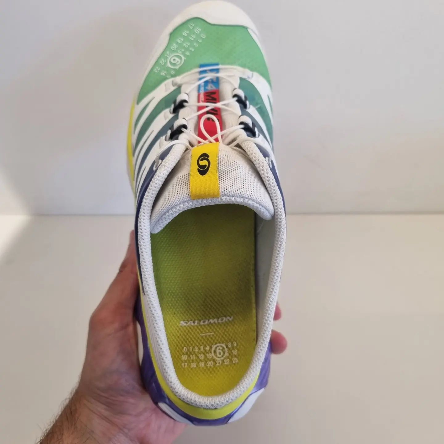 鞋面和鞋垫处均印有 Maison Margiela 标志性设计图案,彰显联名鞋款身份。