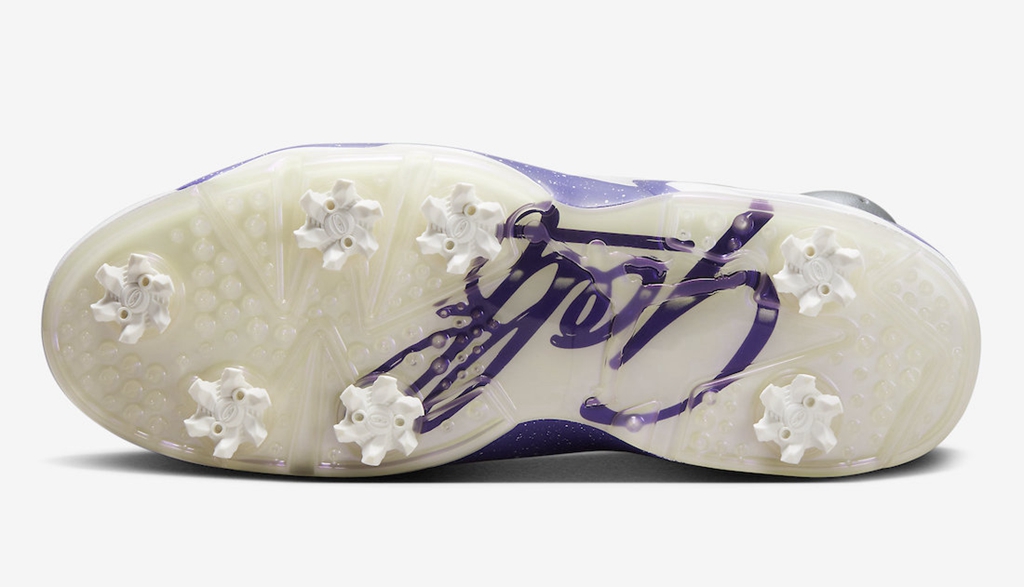 外底采用乳白色透明材质,内部隐约透出 Jordan Golf 的字样。
