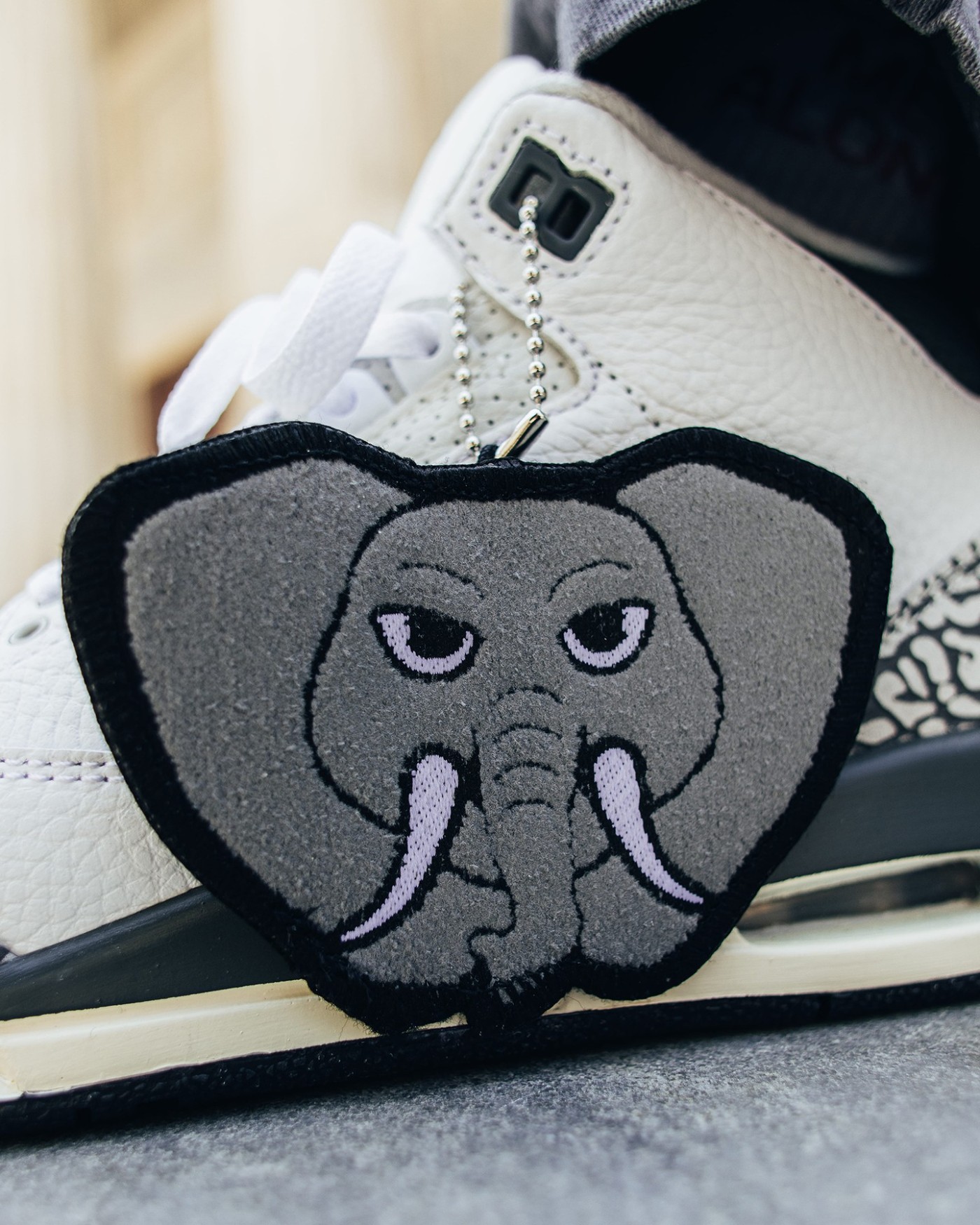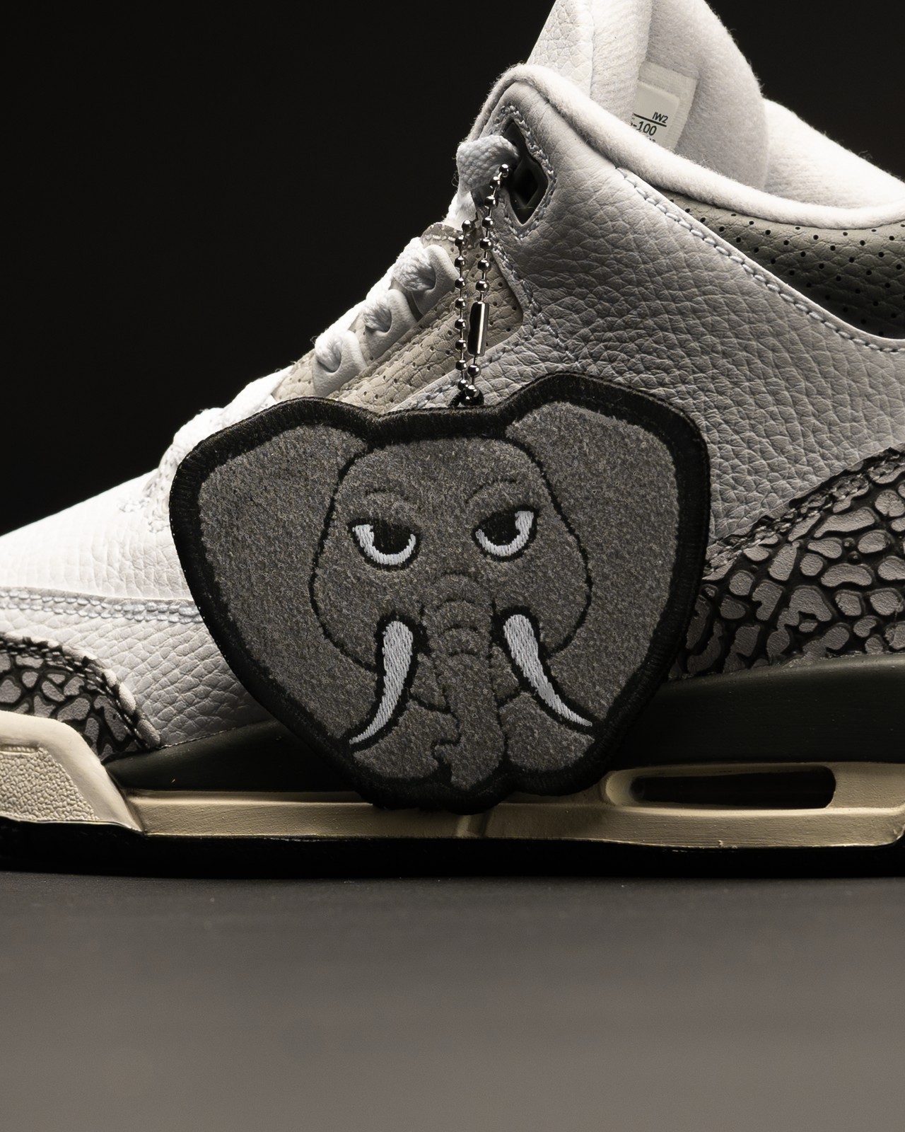 最大的亮点自然是大象吊牌,配合 Air Jordan 3 标志性的大象纹,十分俏皮可爱。