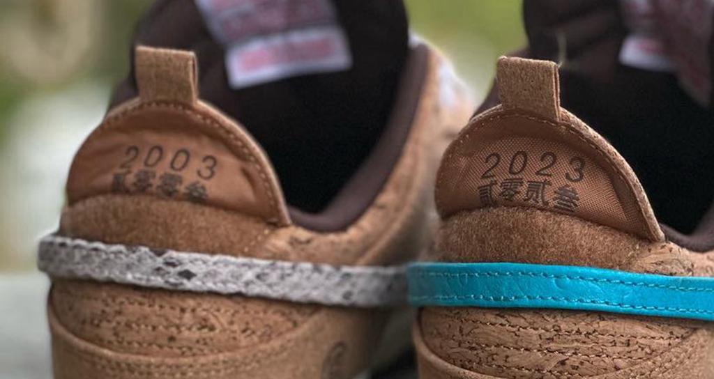 鞋面通体覆盖软木塞材质,并且可以明显看到 Swoosh 设计成了可替换的样式,延续冠希一直力推的 DIY 玩法。