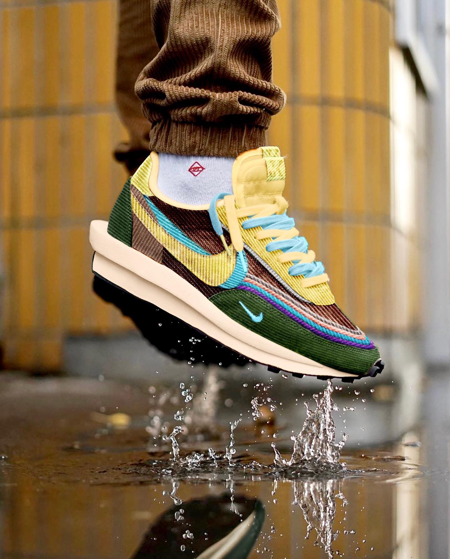 整双鞋以 SeanWotherspoon x Air Max 1 / 97 构色方案无缝嵌入 sacai x Nike LDV Waffle 的鞋身之上。