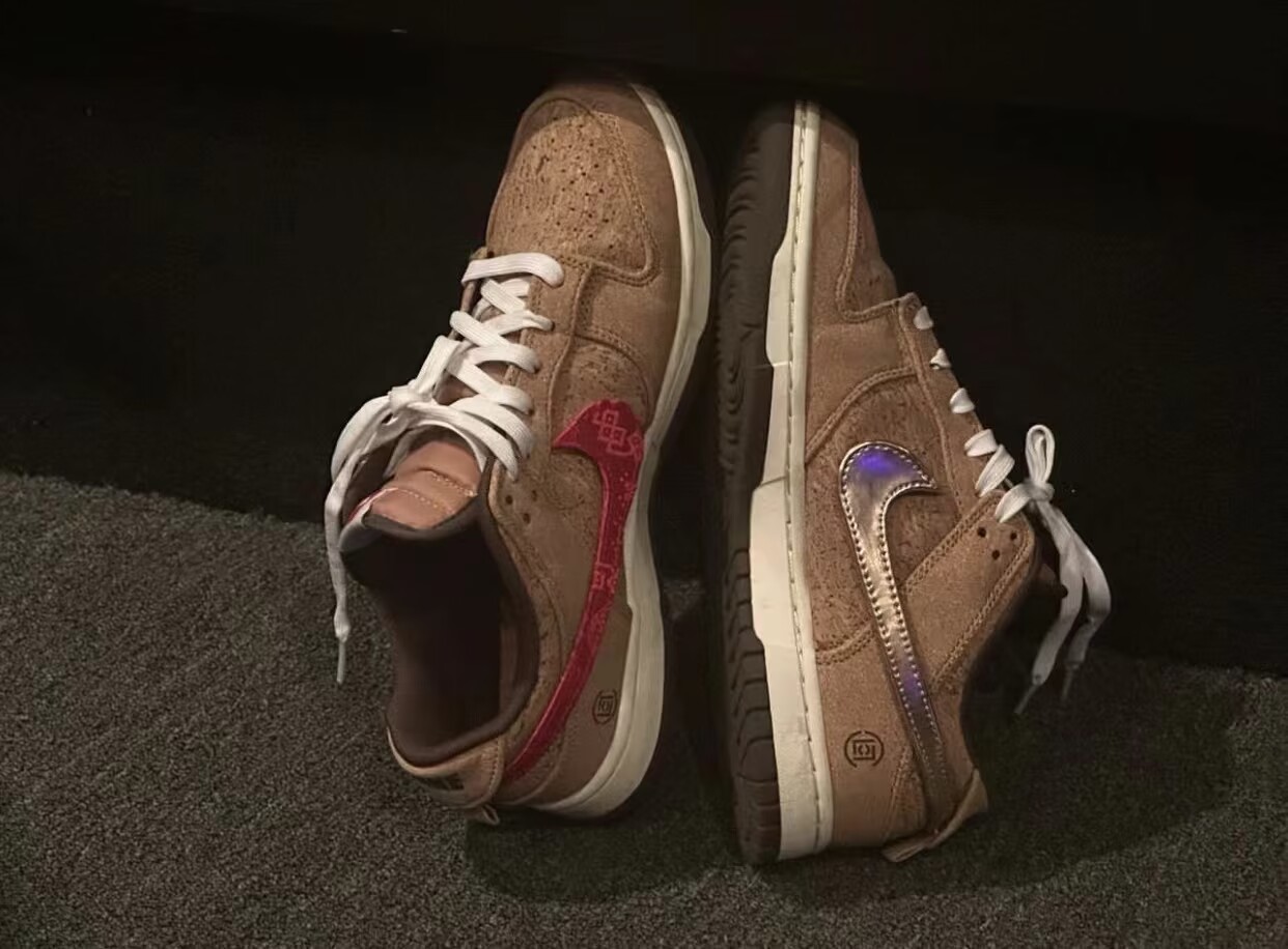 此次依然选择了 Dunk 鞋型,材质上有不小的改动。