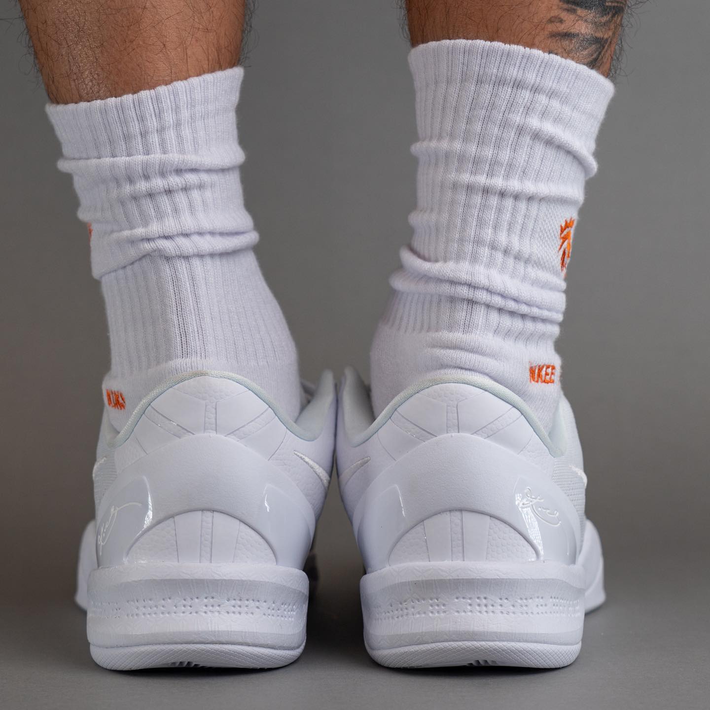 细看,后跟白色的中底区域,还满印着的科比 Logo 矩阵,进一步提升细节表现。