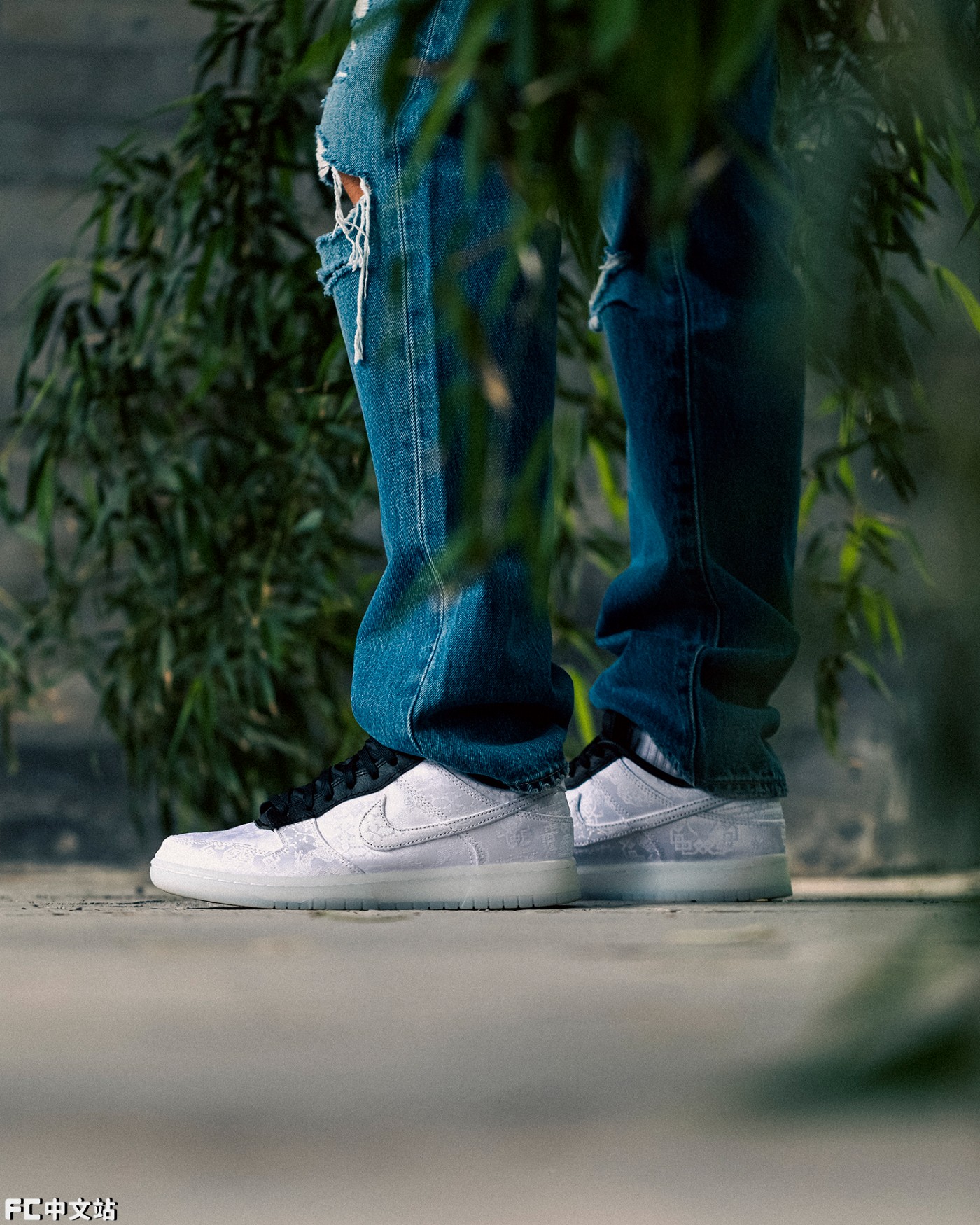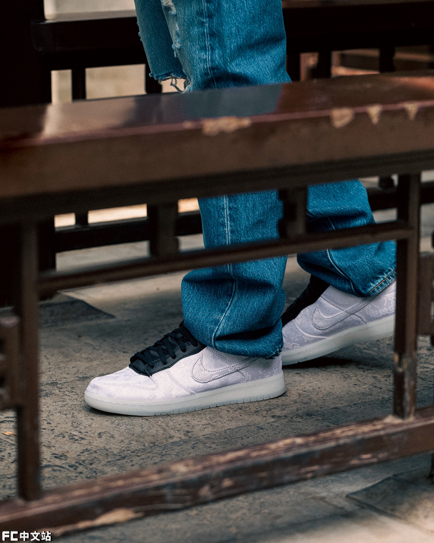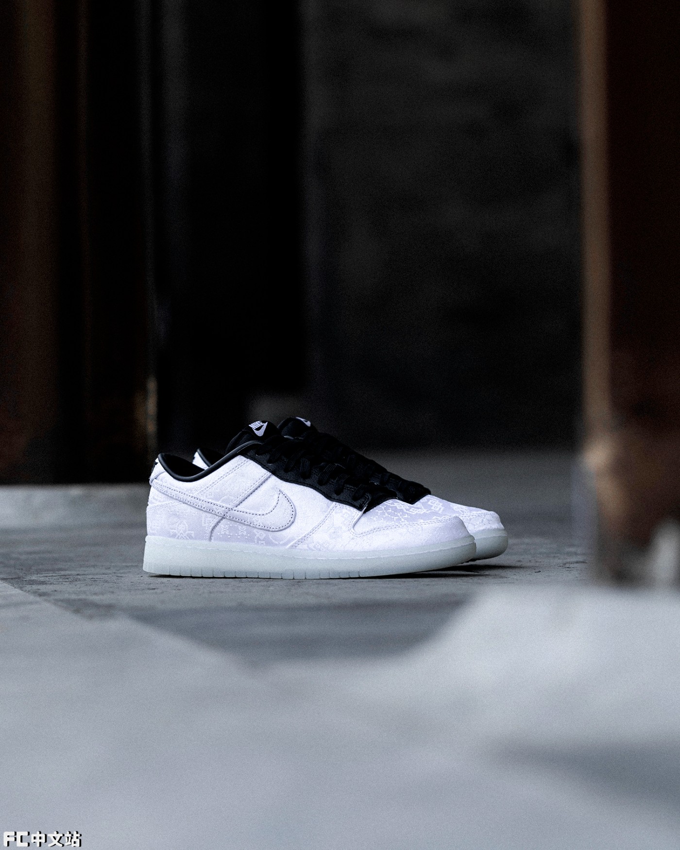 但在众多联名中,要说最重磅、人气最高的肯定还要属被称之为「闪电白丝绸」的 CLOT x fragment design x Nike Dunk Low。
