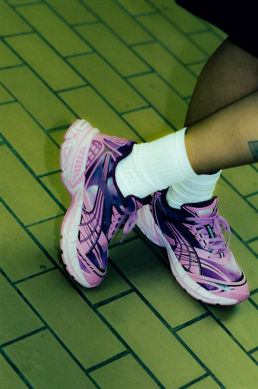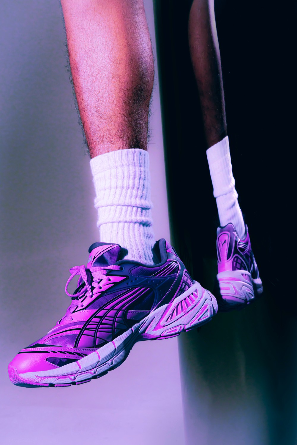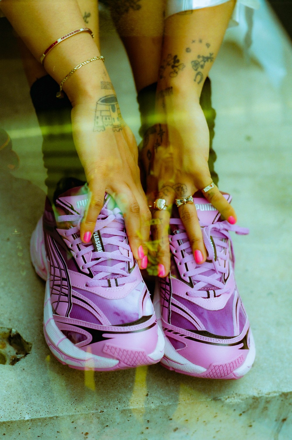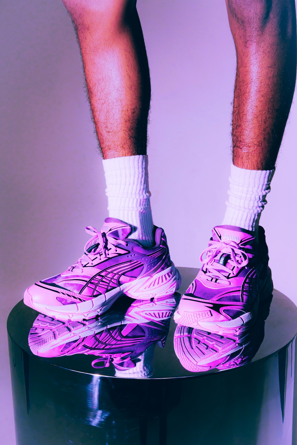 此次全新联名以 PUMA 的复古未来主义鞋型 Velophasis 为蓝本进行创作,并将 Pleasures 对音乐领域亚文化符号的理解融入其中。