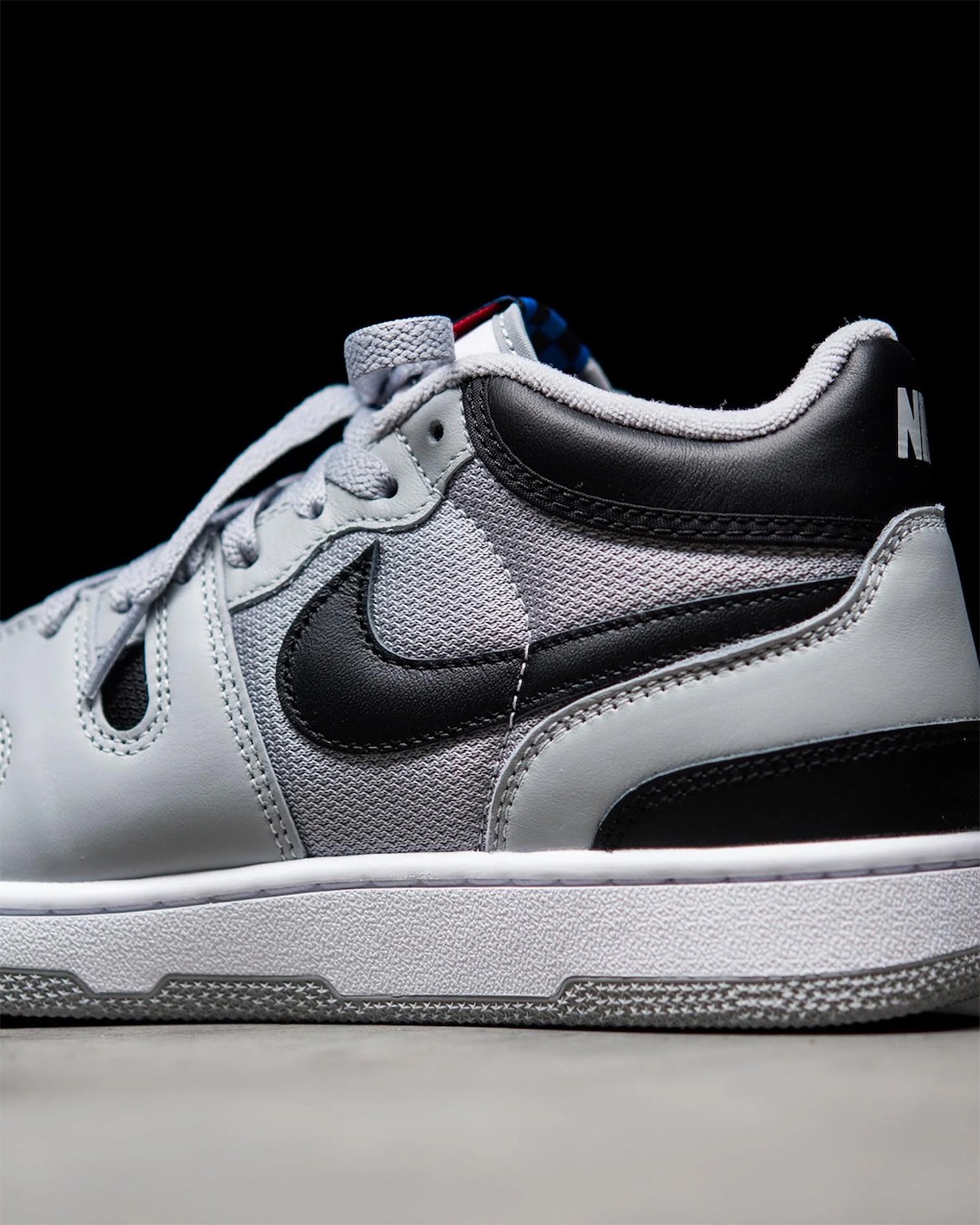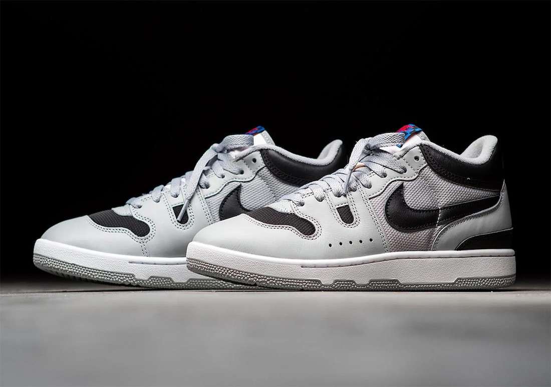 说回鞋款,整体以 1984 年 Nike 为约翰·麦肯罗打造的网球训练鞋为基础设计,采用大面积灰色和黑色 Swoosh 点缀,OG 气质十足。