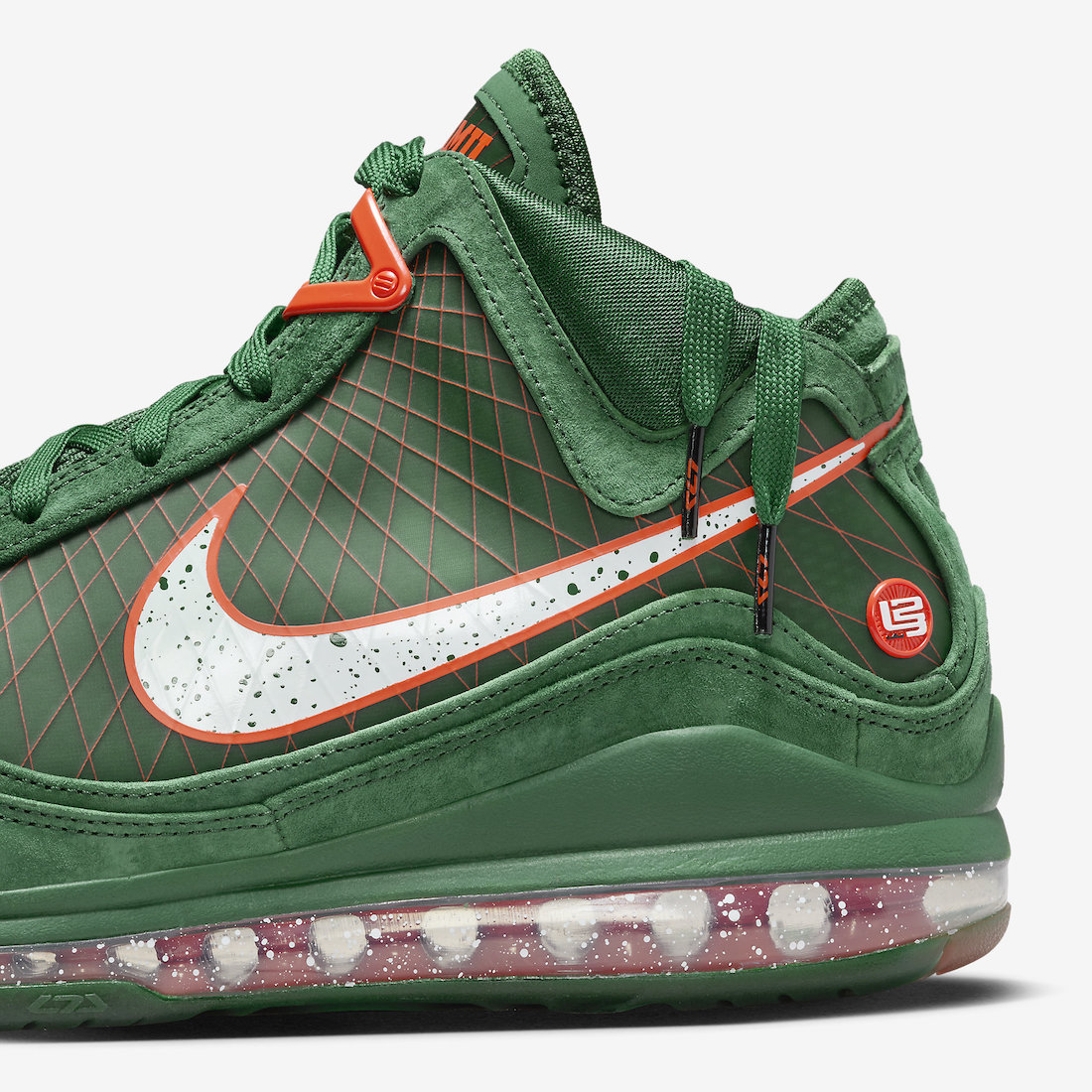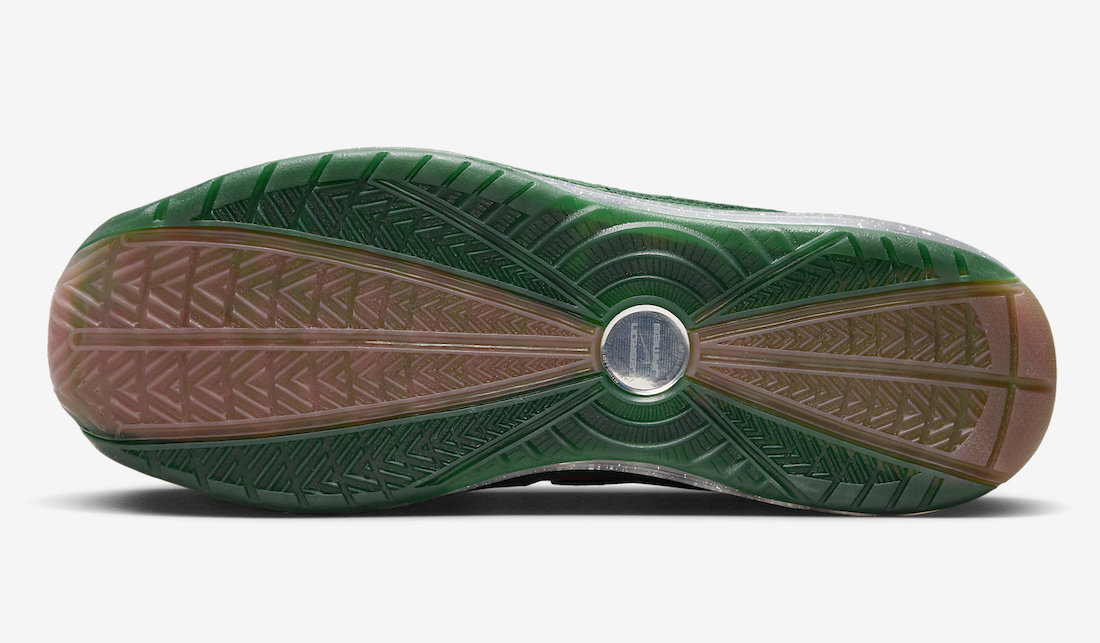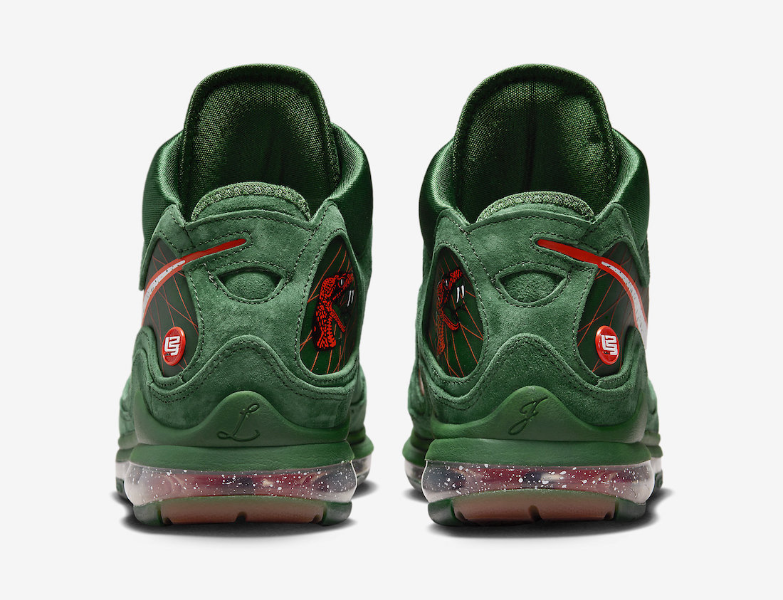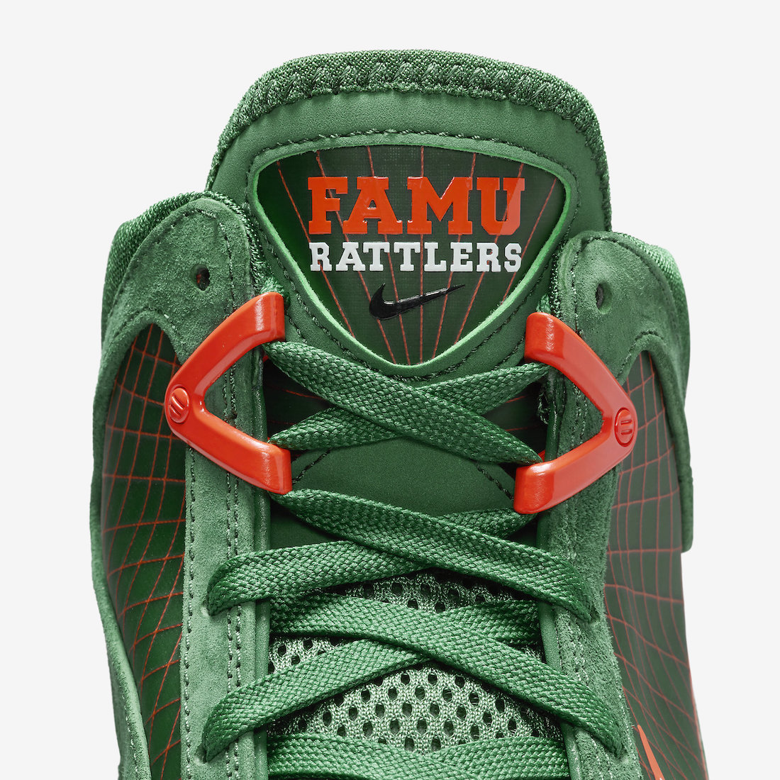 鞋舌将原本的 LeBron Logo 改为了代表着 FAMU 图案,彰显出佛罗里达农工大学配色血统。