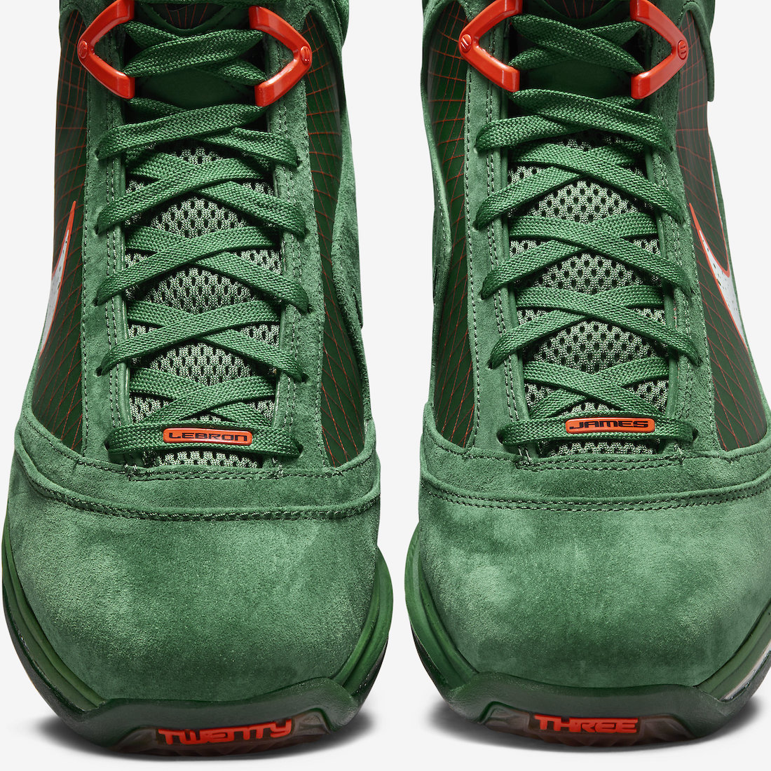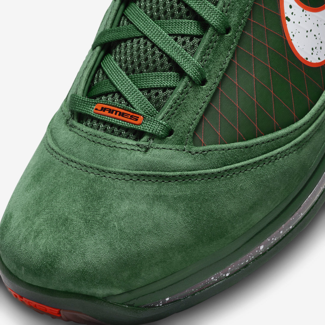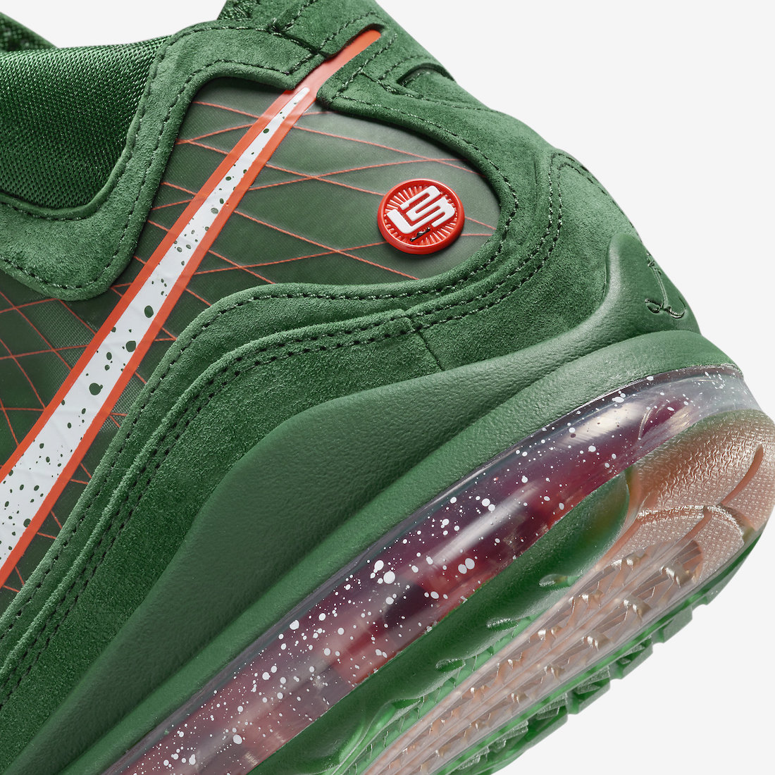 鞋舌将原本的 LeBron Logo 改为了代表着 FAMU 图案,彰显出佛罗里达农工大学配色血统。