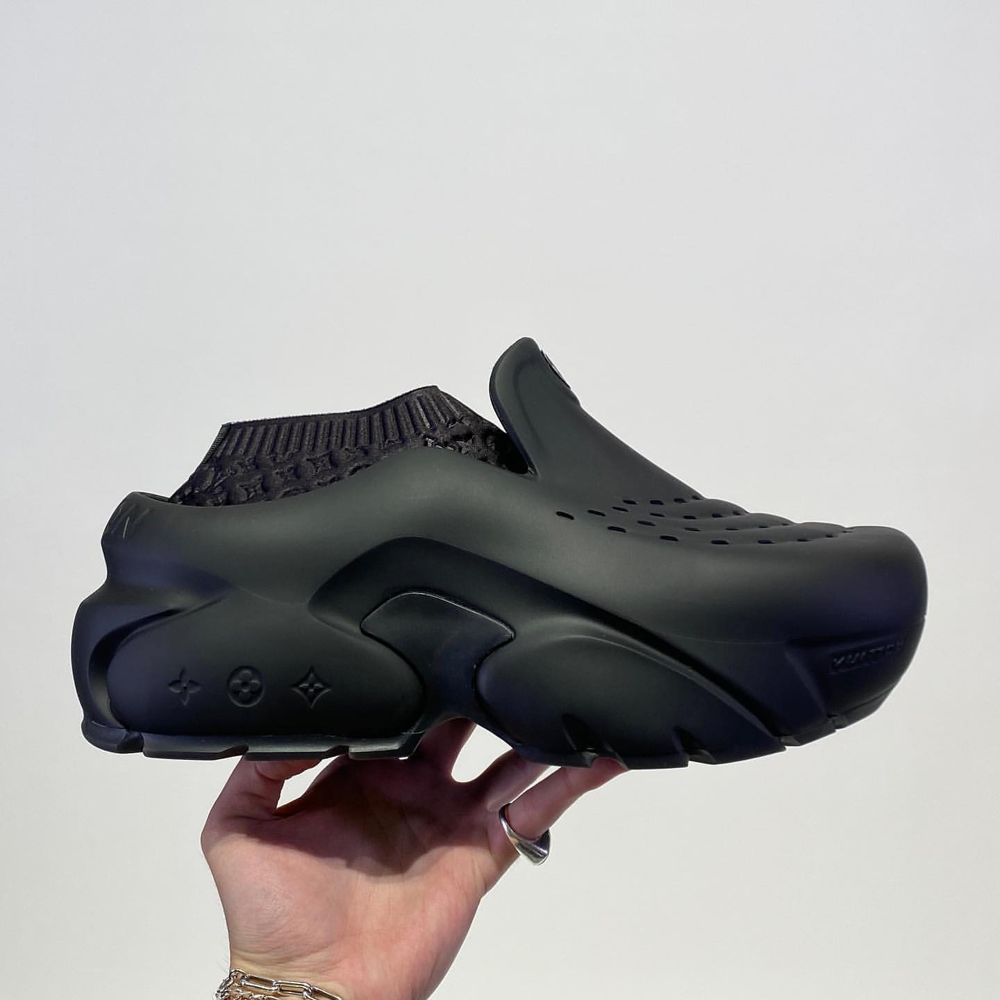 鞋款命名为 Louis Vuitton Shark Clog,叫做「鲨鱼洞洞鞋」合情合理吧。