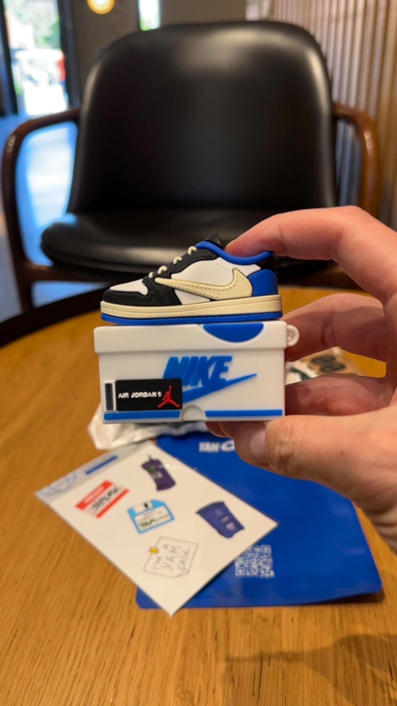 其中就包括 Travis Scott x Air Jordan 1 Low 的保护套,底座以鞋盒为蓝本设计,整体做工还是造型十分可爱。