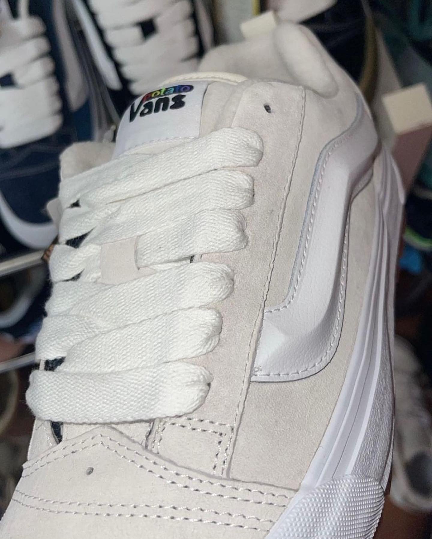 近日,Imran Potato 再度曝光了与 Vault by Vans 联手打造的全新配色 Knu Skool VR3 LX,来看看怎么回事!