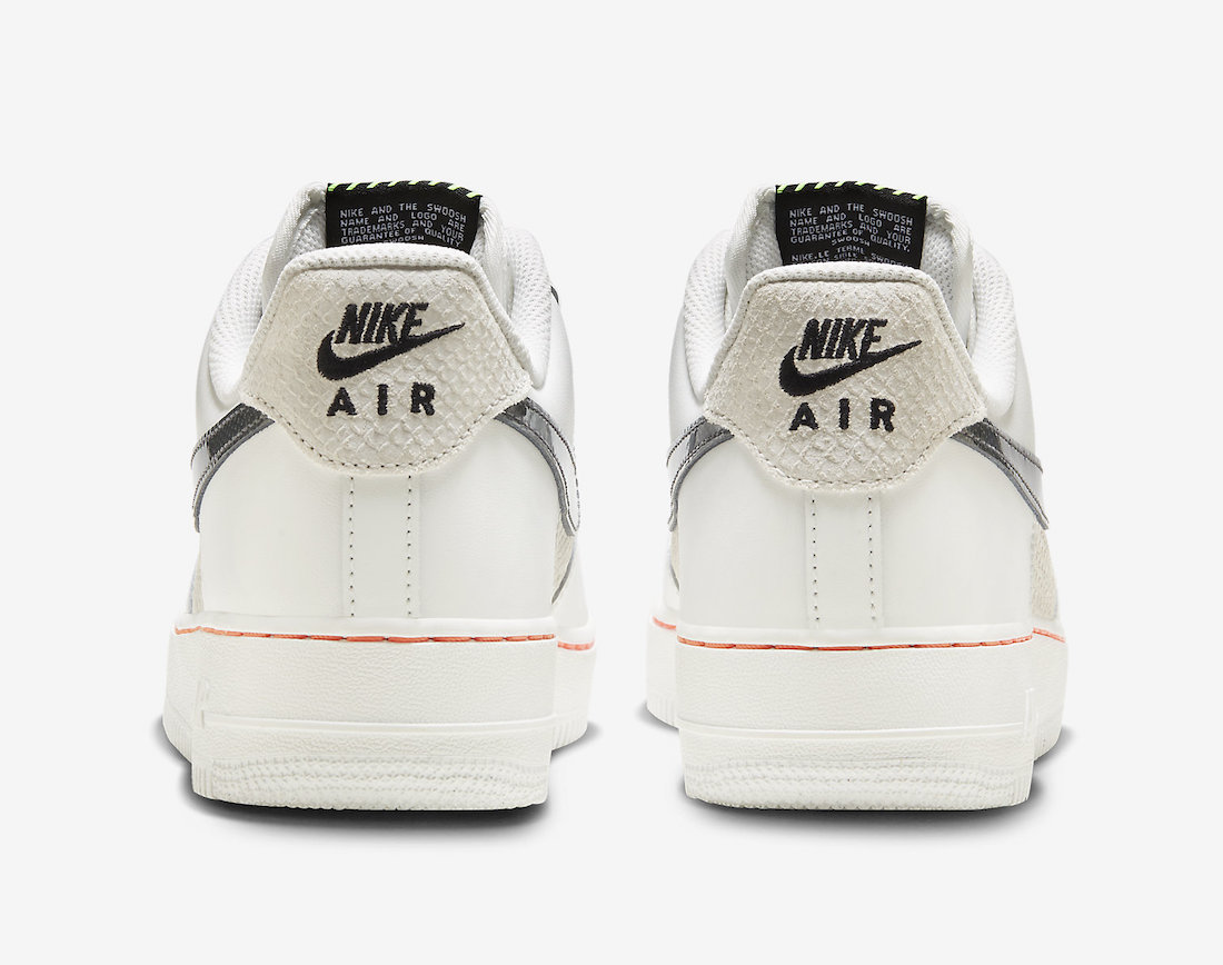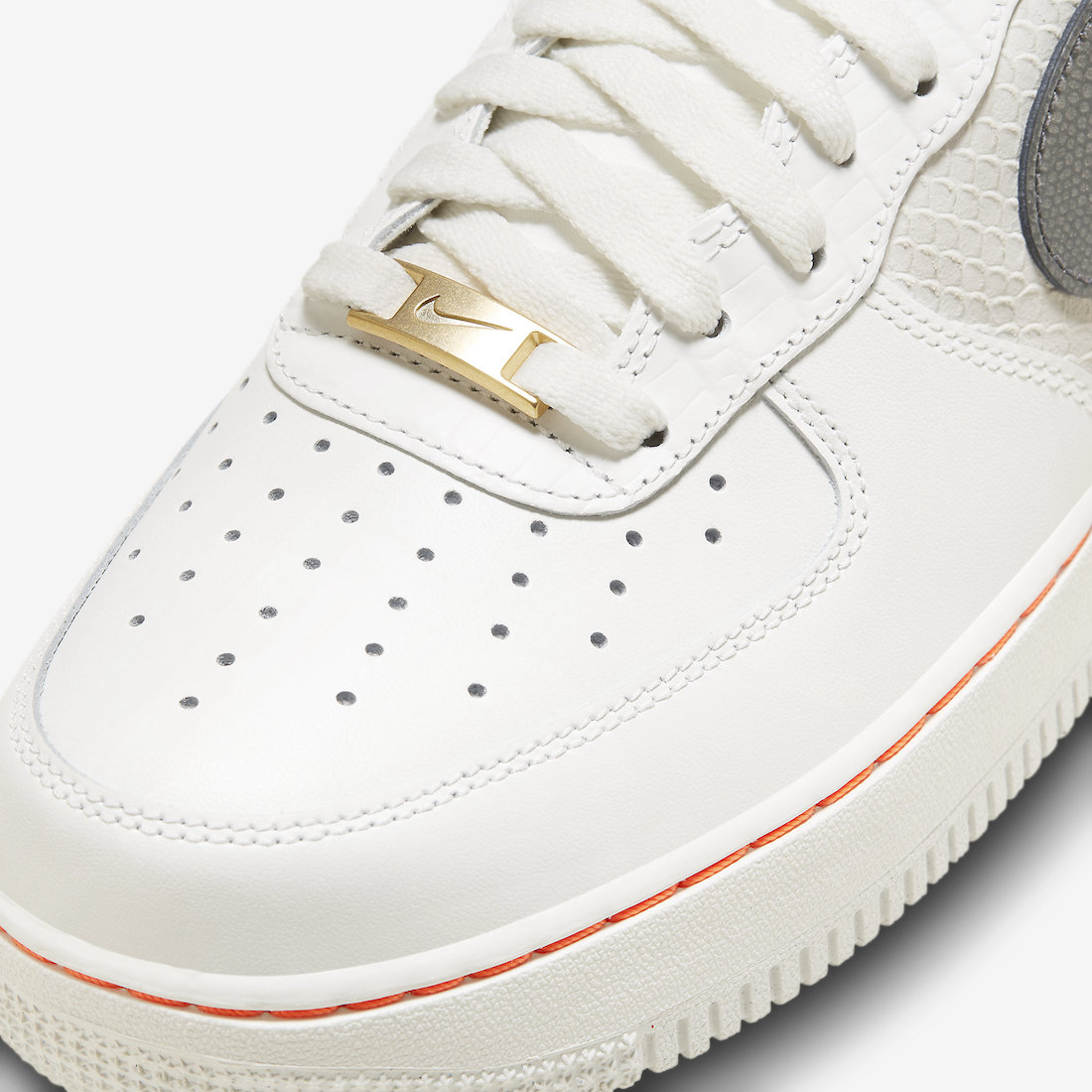 整双鞋以白色呈现,鞋身中部采用蛇皮纹理框架,搭配反光样式的蛇纹 Swoosh Logo,视觉效果颇为张扬。