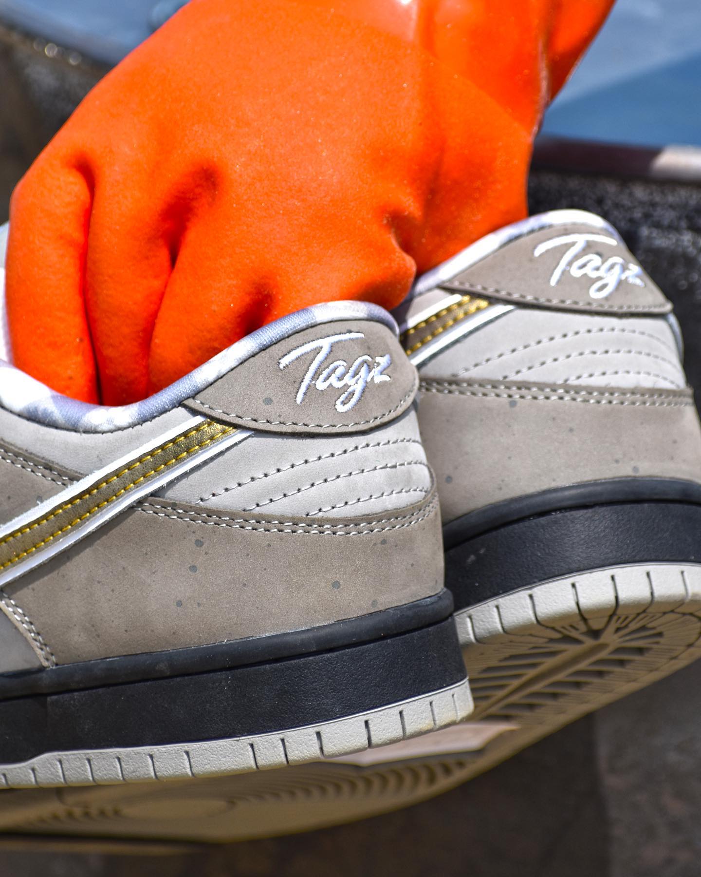 鞋后跟印有 tagz 字样,彰显定制鞋款身份。