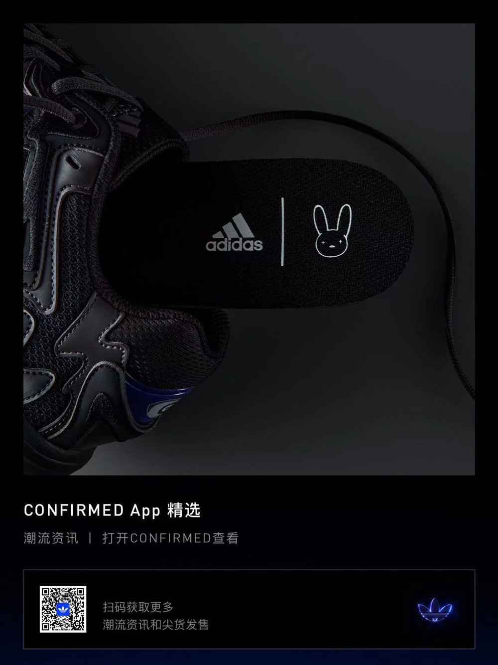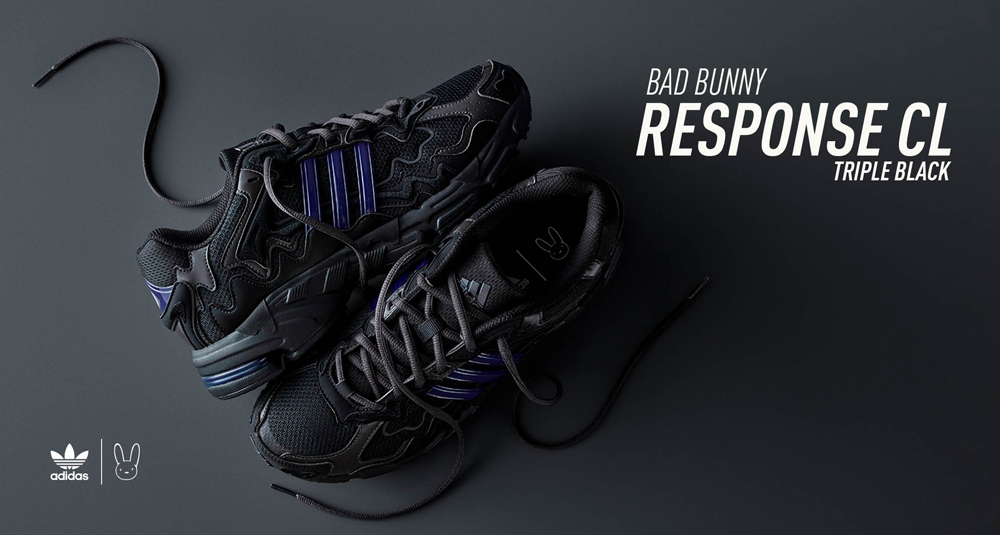去年 Bad Bunny 亲自上脚了一双全新联名 adidas Originals Response CL,凭借着独特的暗黑风让人眼前一亮!