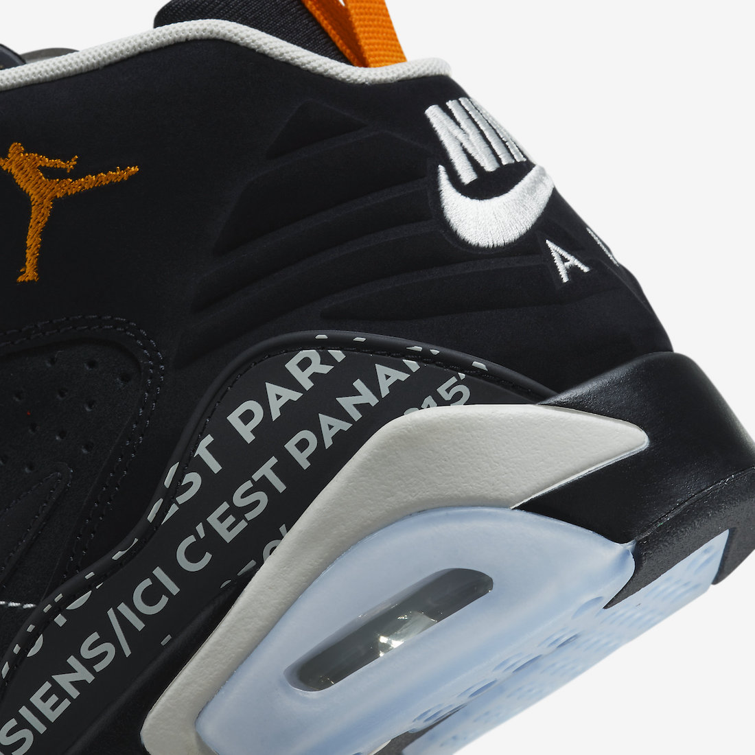 细节方面,橙色的 Jumpman Logo 和拉环十分吸睛,鞋侧 “ICI C'EST PANAME” 字样彰显联名身份。