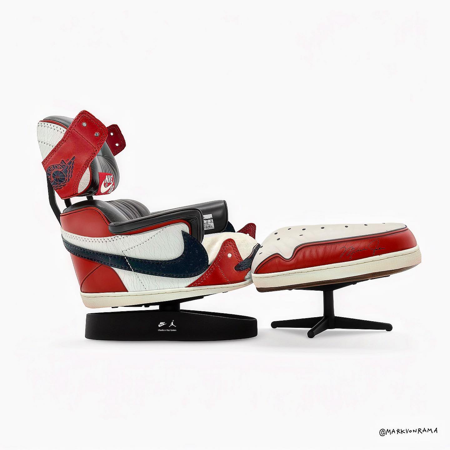 除了以上几款躺椅,还有各种不同造型的椅子,配色上也涵盖了 Dior x Air Jordan 1 、AMBUSH x Nike Dunk Hi 以及 Air Jordan 4 等。
