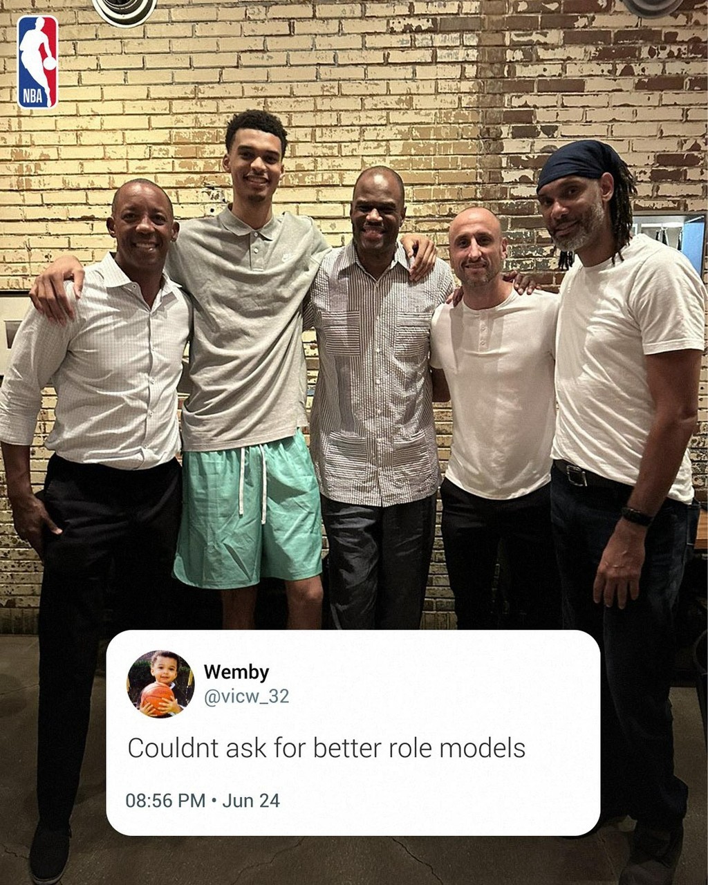 马刺队诸多名宿,比如邓肯、罗宾逊、吉诺比利,甚至还一起为文班亚马举办接风晚宴,这波排面真的没谁了!