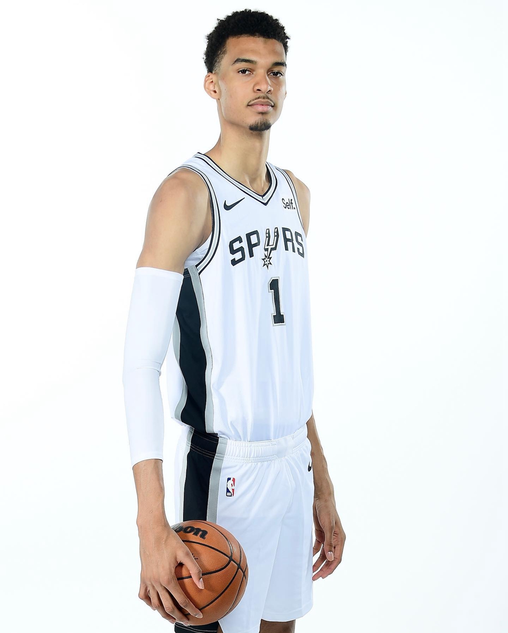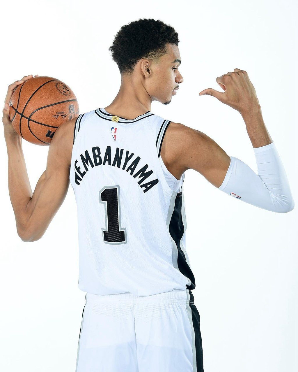 仪式过后,文班亚马终于穿上了自己梦寐以求的马刺队 1 号球衣,拍摄了自己 NBA 生涯的第一组定妆照。