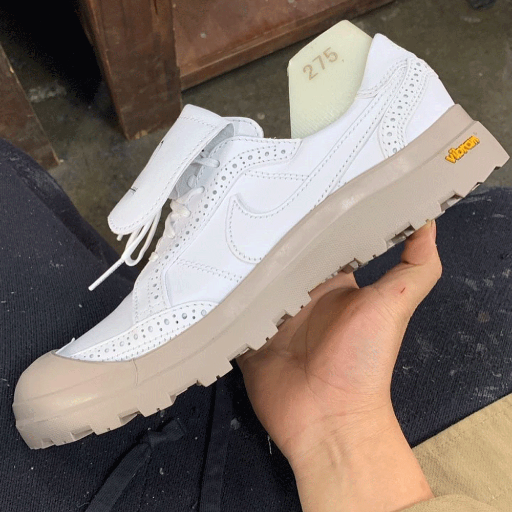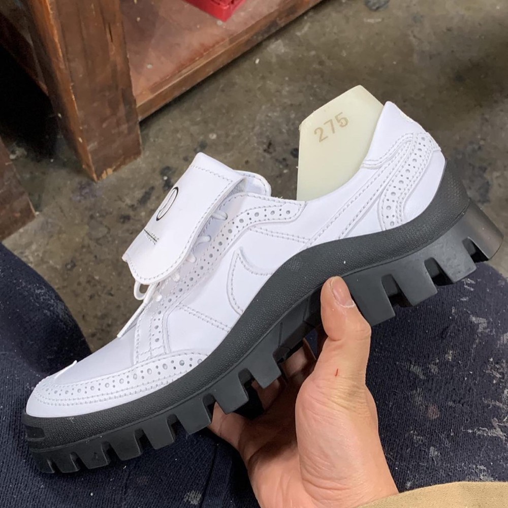 第一个全新版本将其改为了 Air Force 1 中底,纯白色外形搭配上写有「AIR」字样的纯白中底,一下子将气质这一块稳稳拿捏。