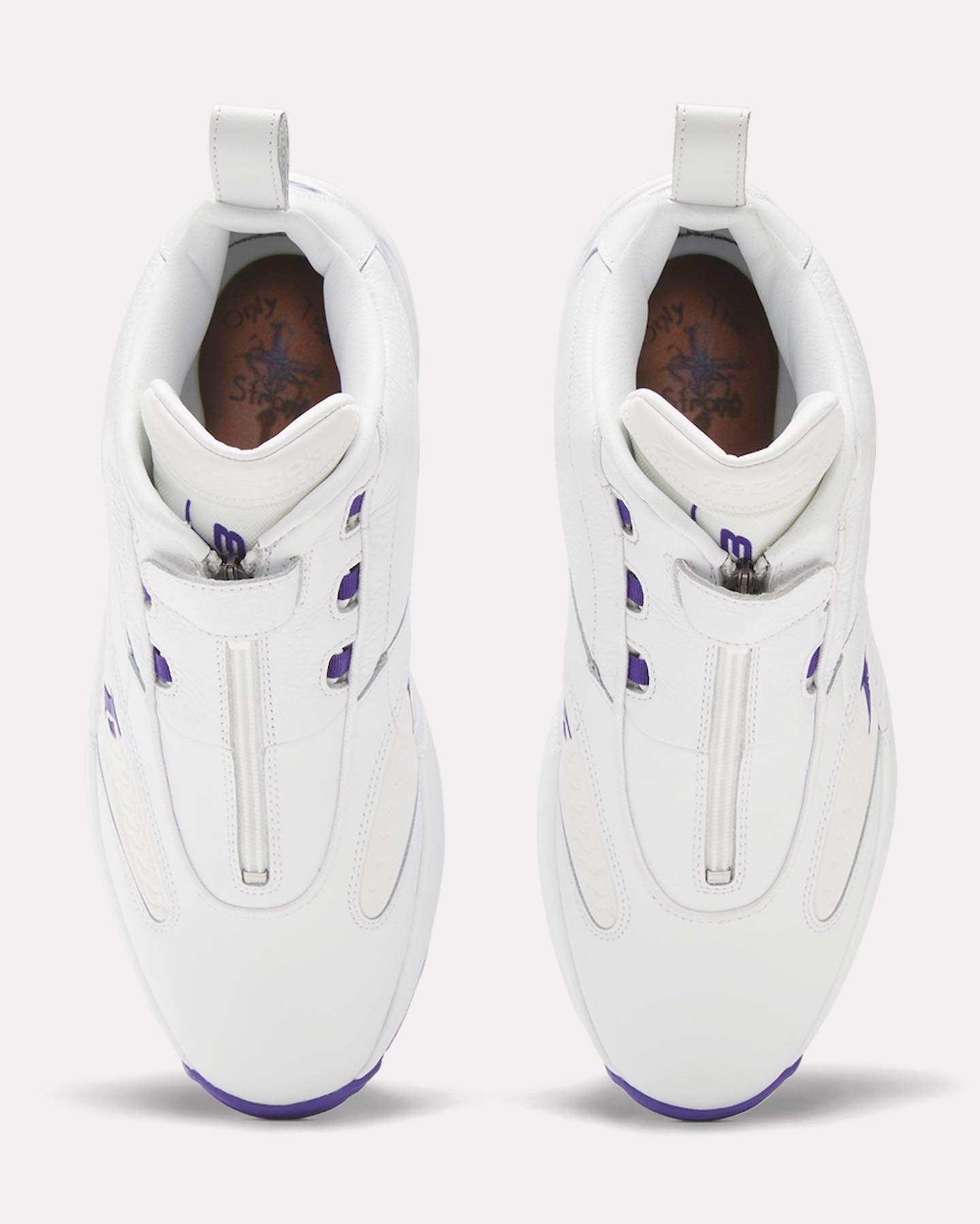 整双鞋采用大面积白色妆点,紫色点缀,完美还原元年配色。
