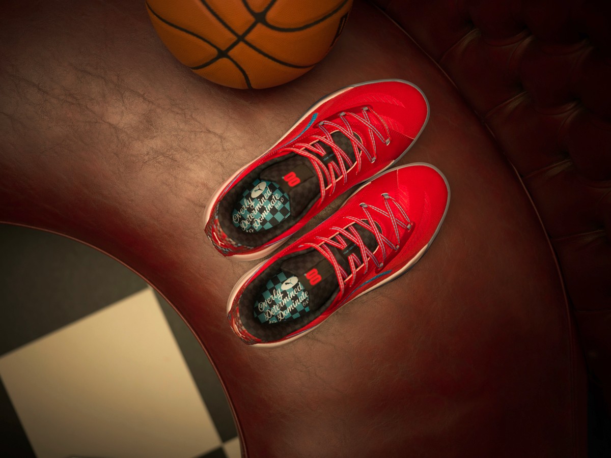 整双鞋采用通体红色打造,辅以蓝色丰富细节,仿佛是在向世界宣告着斯库特·亨德森的 “致命攻击力”,并且将「决意主宰」的主题彰显。