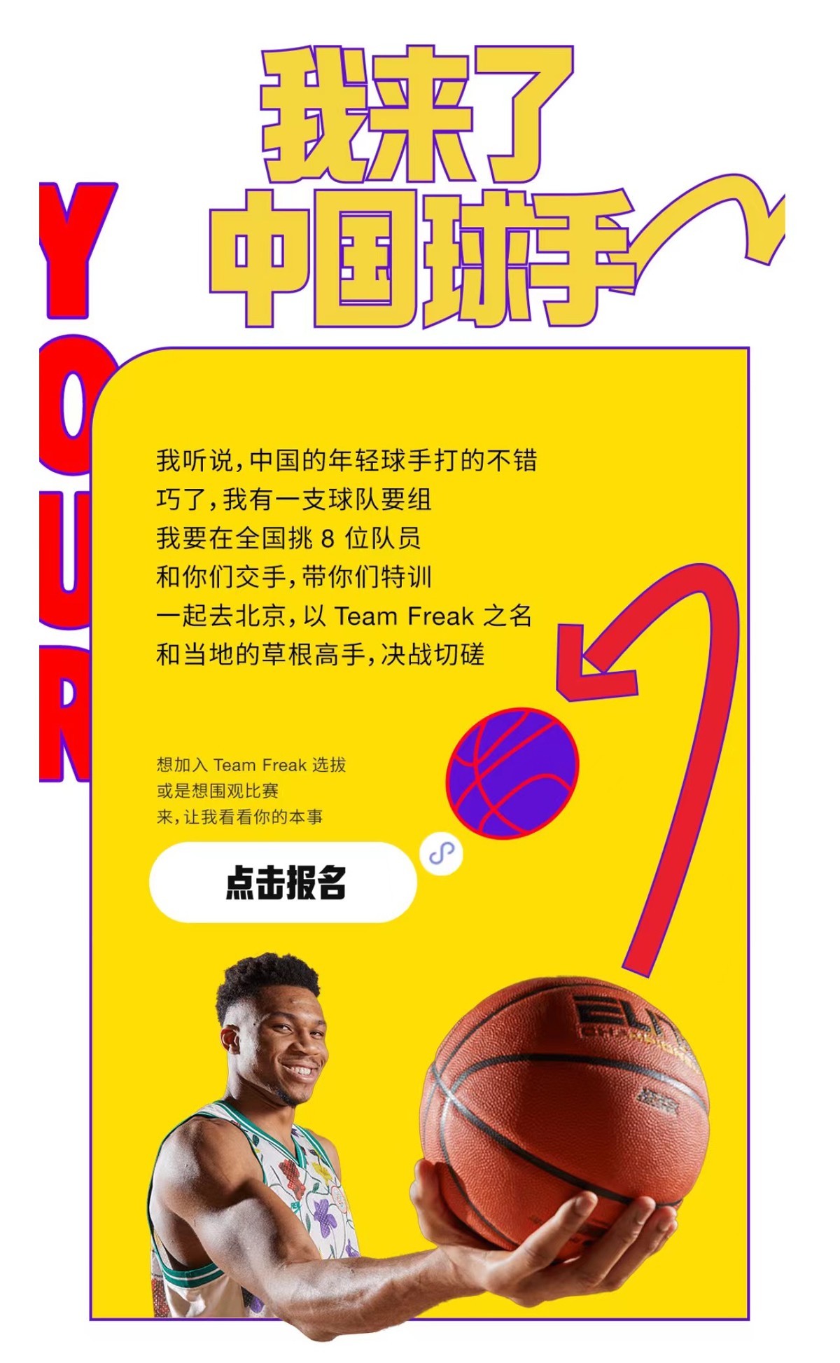 具体活动分别为报名球赛与「字母哥」现场切磋,或者报名观众席位围观这一场视觉盛宴。