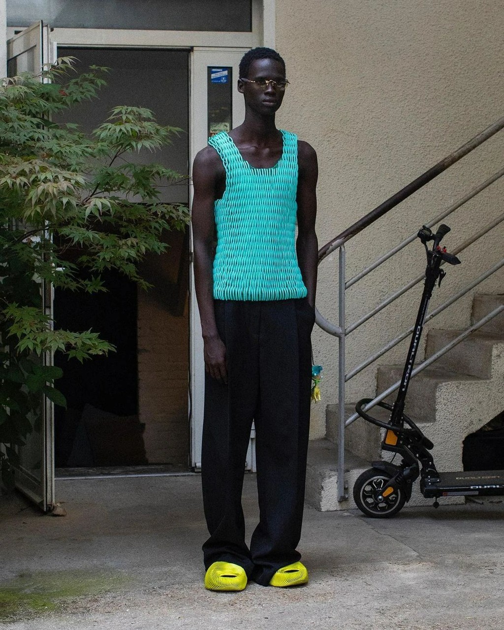 这样一双造型超前的拖鞋,在搭配上需要更下功夫才能呈现出众的时尚感。