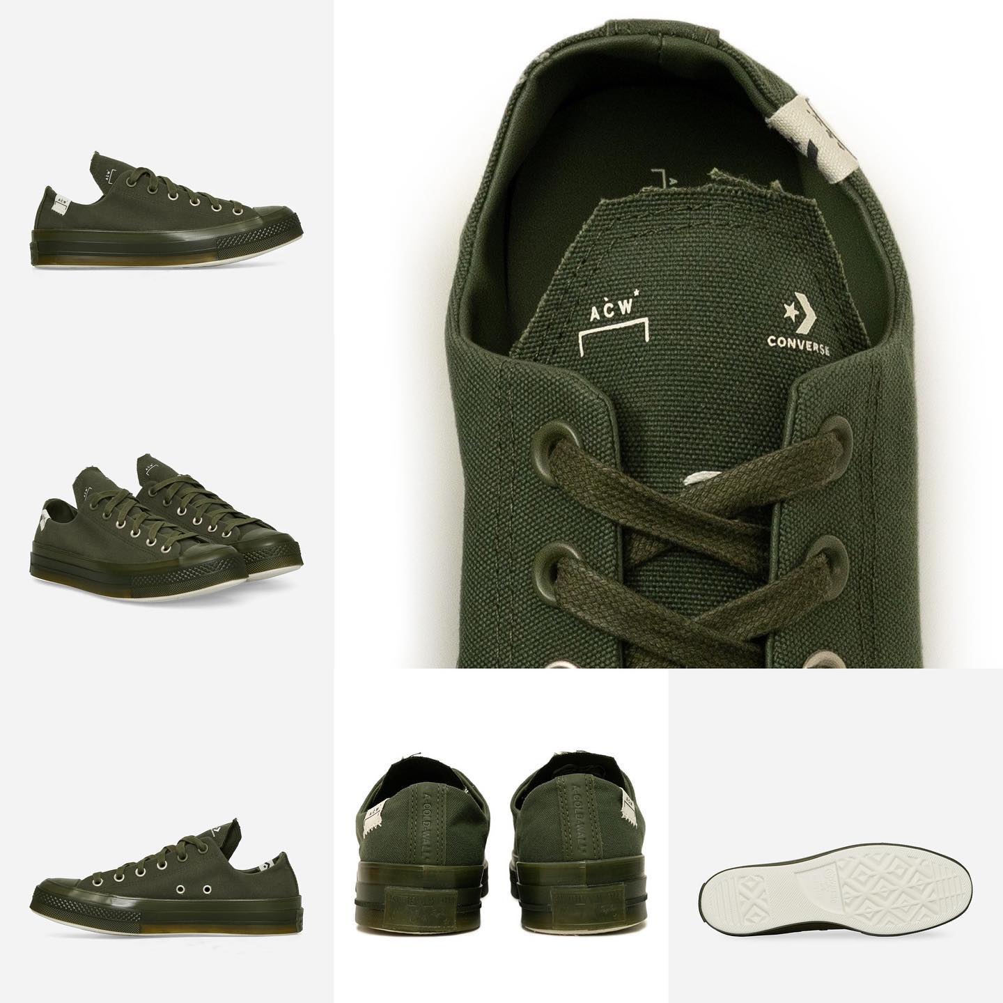 第一款采用通体军绿色打造,辅以乳白色鞋身细节,呈现出 A-COLD-WALL* 专属的时尚气质。
