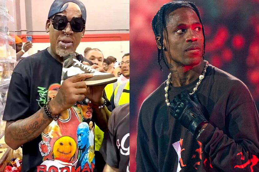 就在最近,罗德曼还在一场直播中声称,Travis Scott 的「倒钩」Air Jordan 1 是抄袭了 Nike Darwin 的 Swoosh 设计,太有节目效果了。