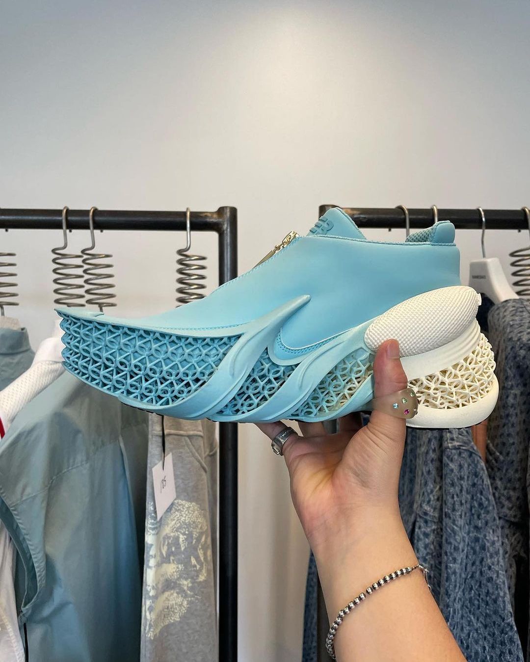 还在鞋头加入了一小块 3D 打印材质,彰显联名身份。