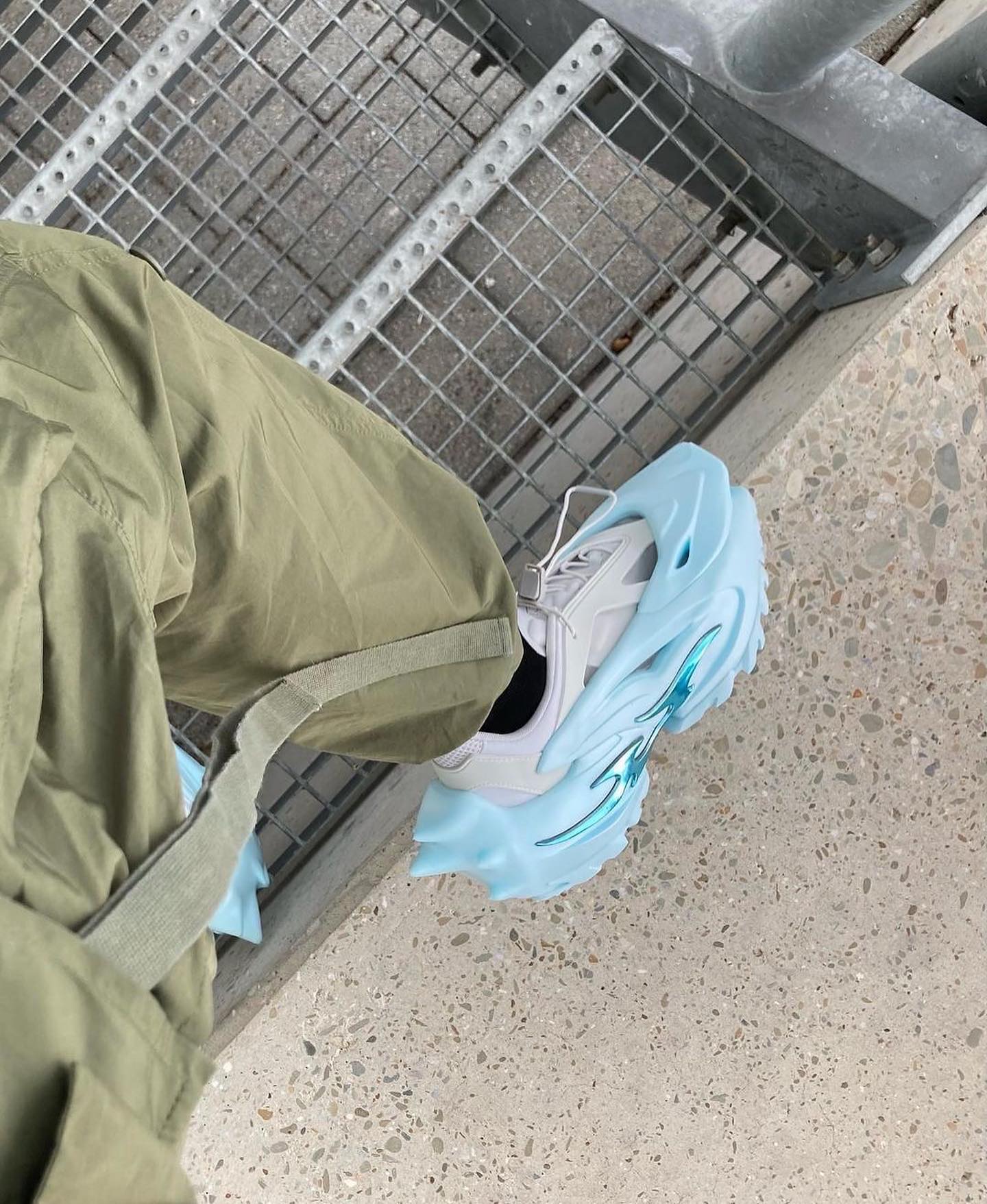 第一眼看到这双被称之为 NFRNO 的鞋款,首先必定是被这硕大的廓形中底所吸引,饱含着超强的速度感。