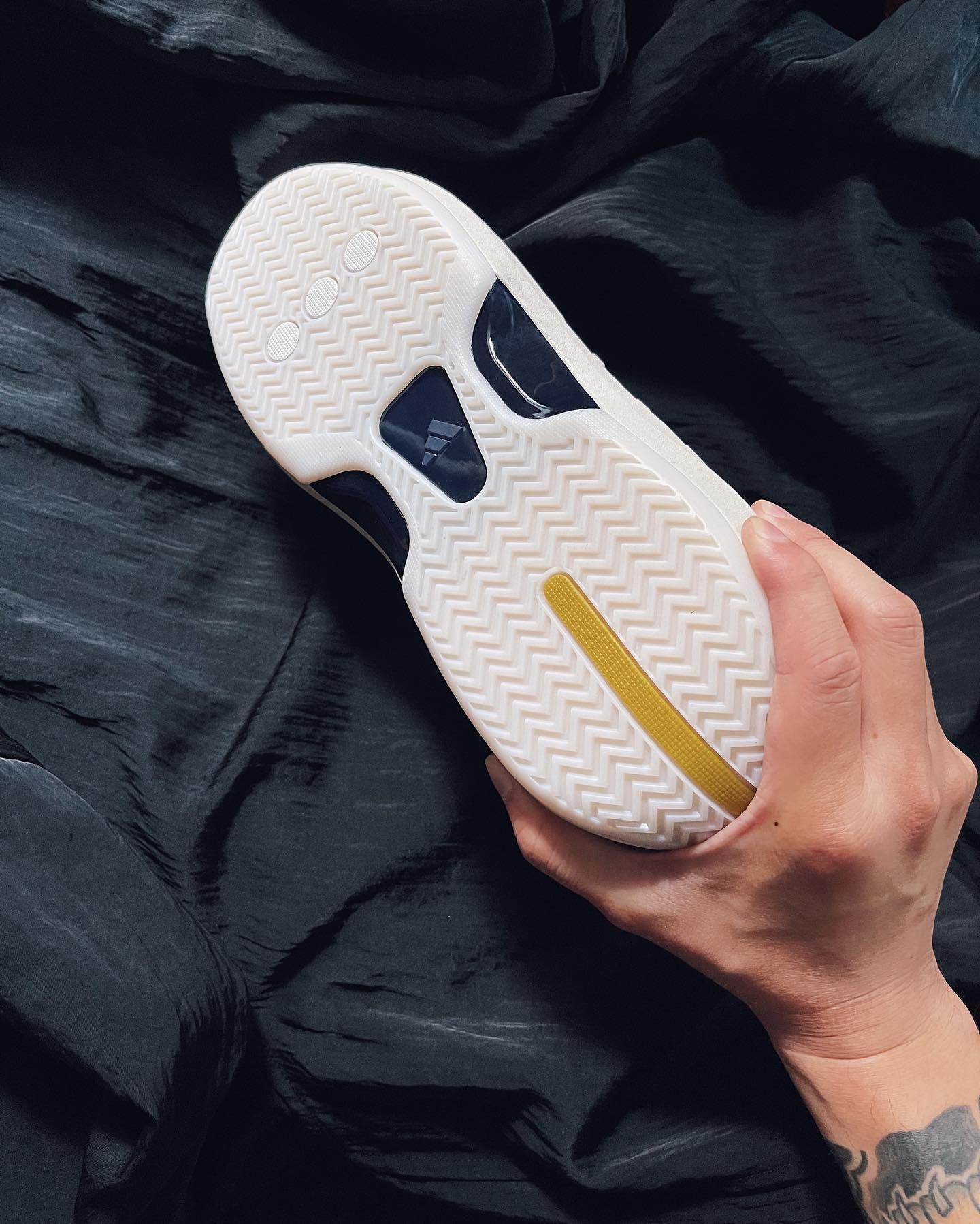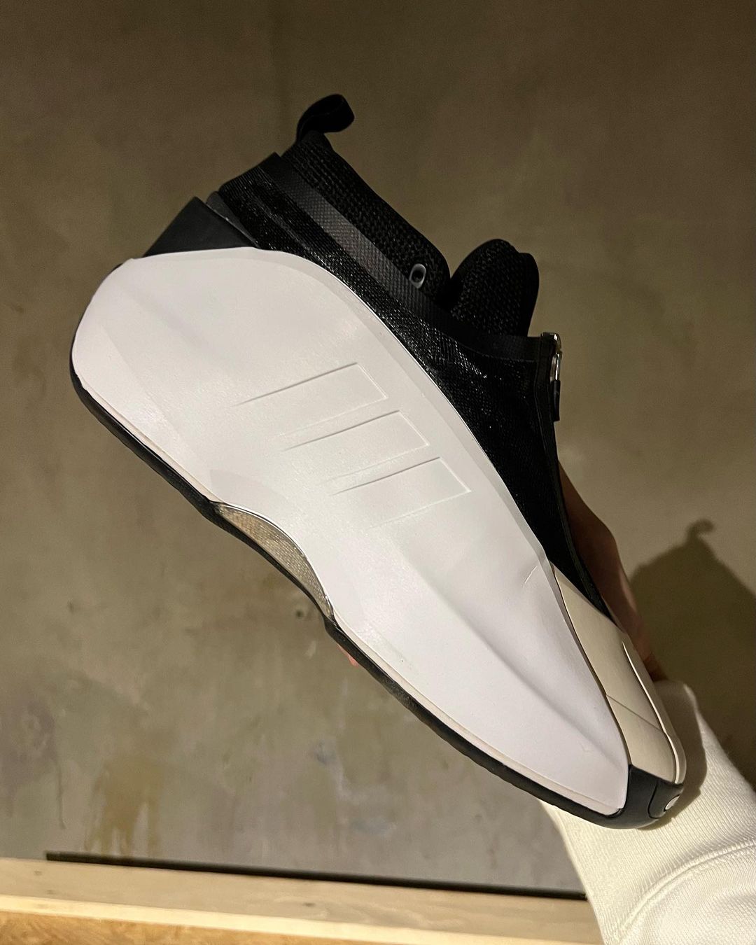 从目前曝光的实物图来看,鞋身采用 2000 年前后 adidas basketball 倡导的极简设计语言,鞋身侧面与曾经科比战靴 adidas The Kobe(Crazy I)如出一辙。